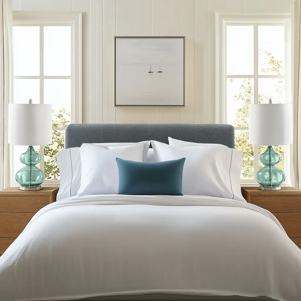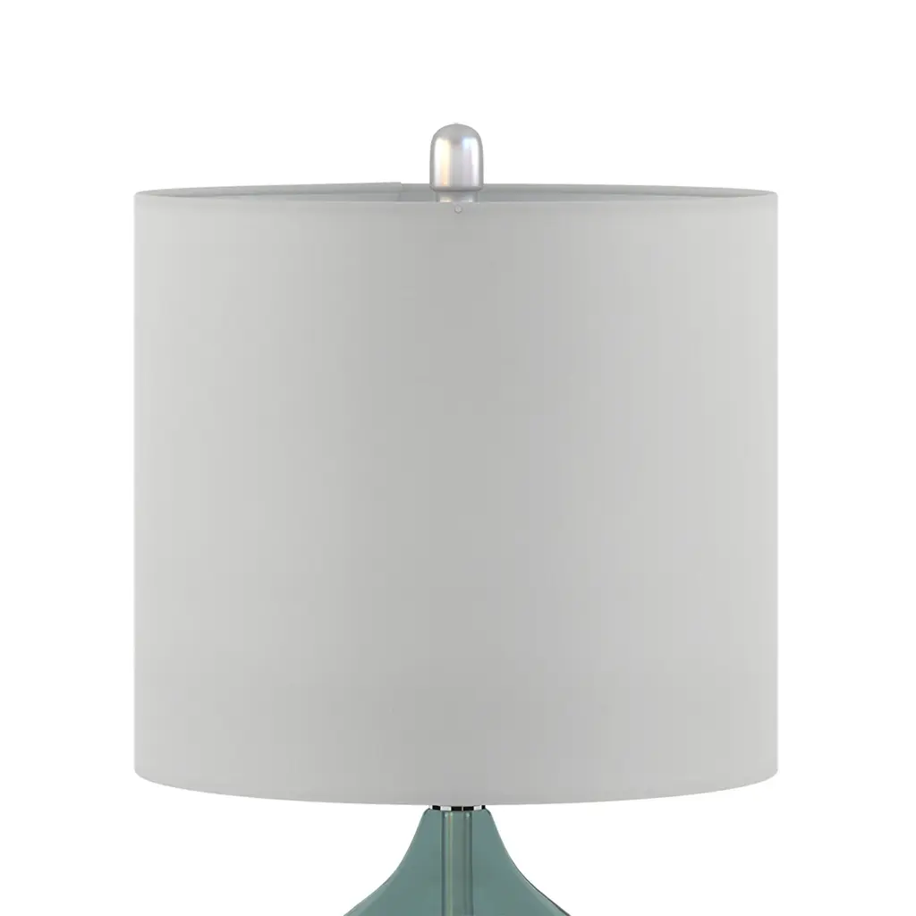 The 510 Design Ellipse Table Lamp Set brings modern elegance to any space. This set of 2 lamps features double-stacked gourd-shaped glass bases with polished surfaces and brushed gold metal accents. The translucent glass softly diffuses light for a warm, ambient glow. Each lamp is topped with a white fabric drum shade and a gold metal finial for a sophisticated touch. Designed for versatility, they provide both upward and downward lighting and include two energy-efficient 9W LED bulbs. Perfect for living rooms, bedrooms, or home offices. Spot clean only. Includes a 2-year limited warranty.Features:Dimensions: