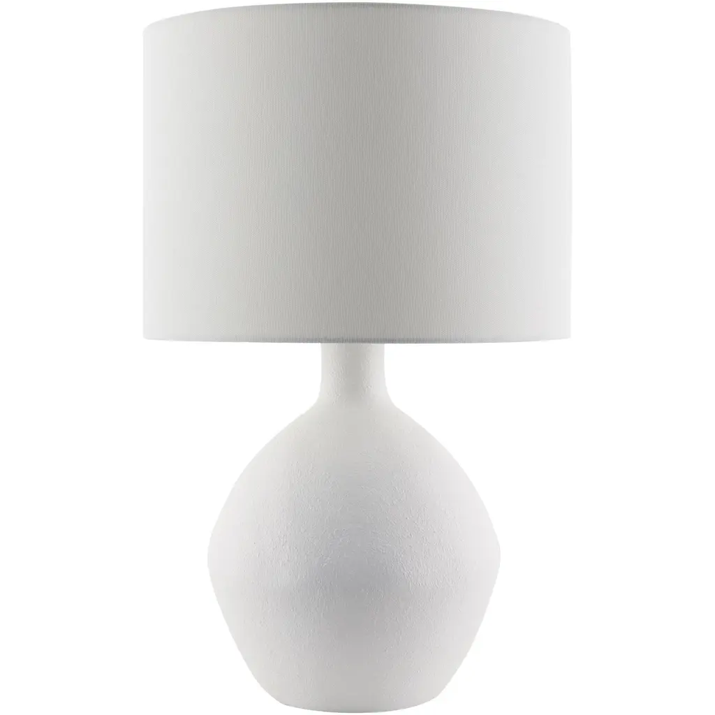 With its subtle teardrop shape and neutral off-white color the Ellston lamp makes an easy addition to almost any room. The ceramic lamp has an eggshell crackle effect and sand colored bottom while the white shade adds the perfect topper. It features a 100 watt bulb capacity.