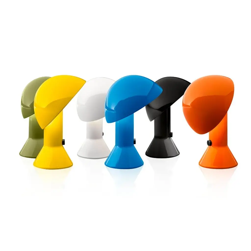 Martinelli Luce’s Elmetto table lamp delights with its joyful expression. Designed by Elio Martinelli and launched in 1976 in Italy, Elmetto features a hemisphere-shaped diffuser and a sturdy conical base, which make the luminaire stand out even when turned off. Thanks to the adjustable diffuser, you can adjust the angle of the light to your liking. The table lamp is made of molded resin with a high-gloss finish. Small and characterful Elmetto lamps are perfect luminaires, for example, for nightstands, windowsills or living room side tables. Their distinctive colors and forms add a pop of 1970s to any interior.