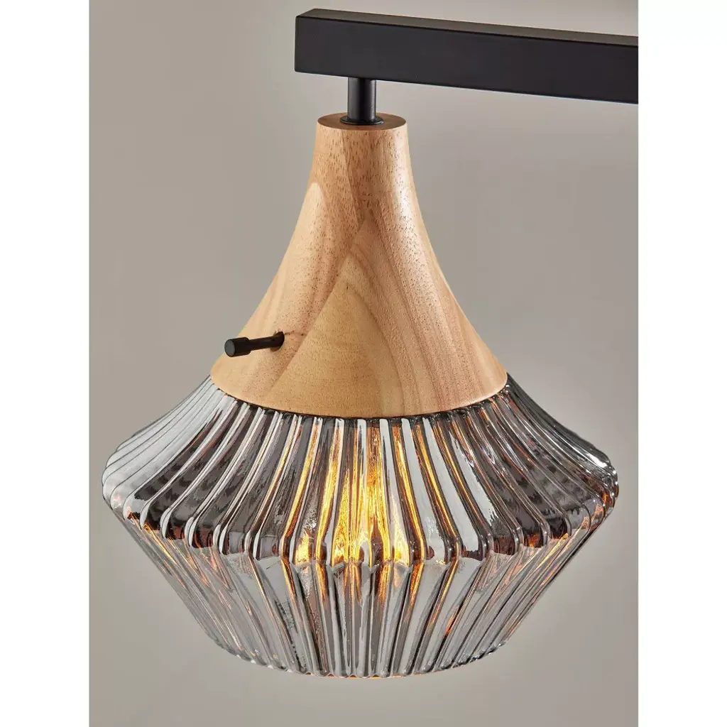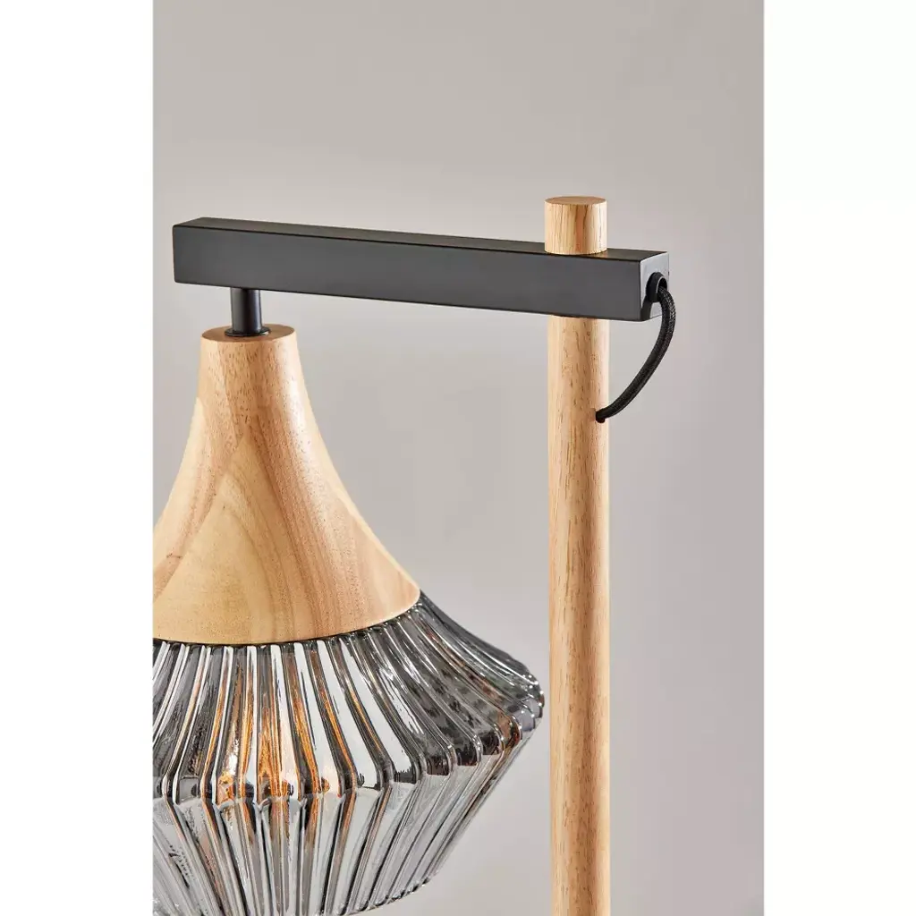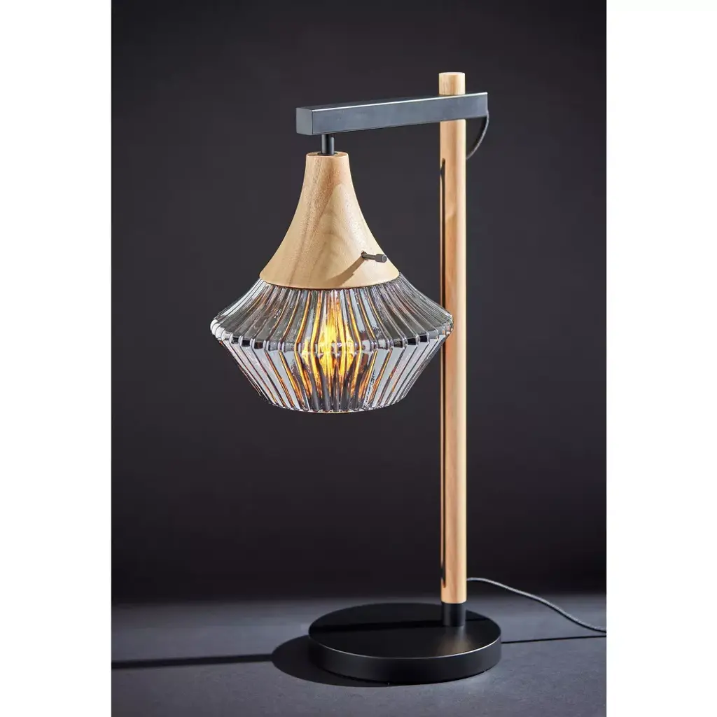 Elsie Natural Wood Table Lamp Black - Adesso: Ribbed Smoked Glass, Etl Listed, No Assembly Required