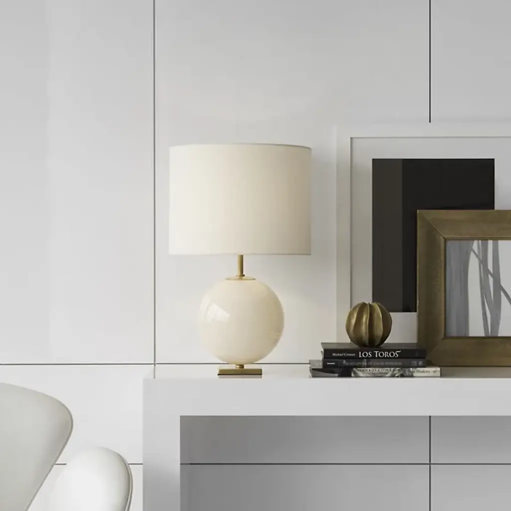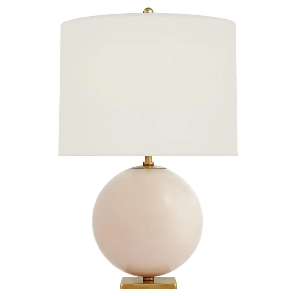 The Elsie Table Lamp by Visual Comfort Signature, formerly known as Visual Comfort, gives a little extra oomph to your home décor, adding a seamless painted glass sphere to the traditional table lamp design, which includes a rectangular base and Linen shade. Once lit, the sphere works in conjunction with the shade, reflecting and refracting light for a warm, even ambiance that is both useful and pleasant.