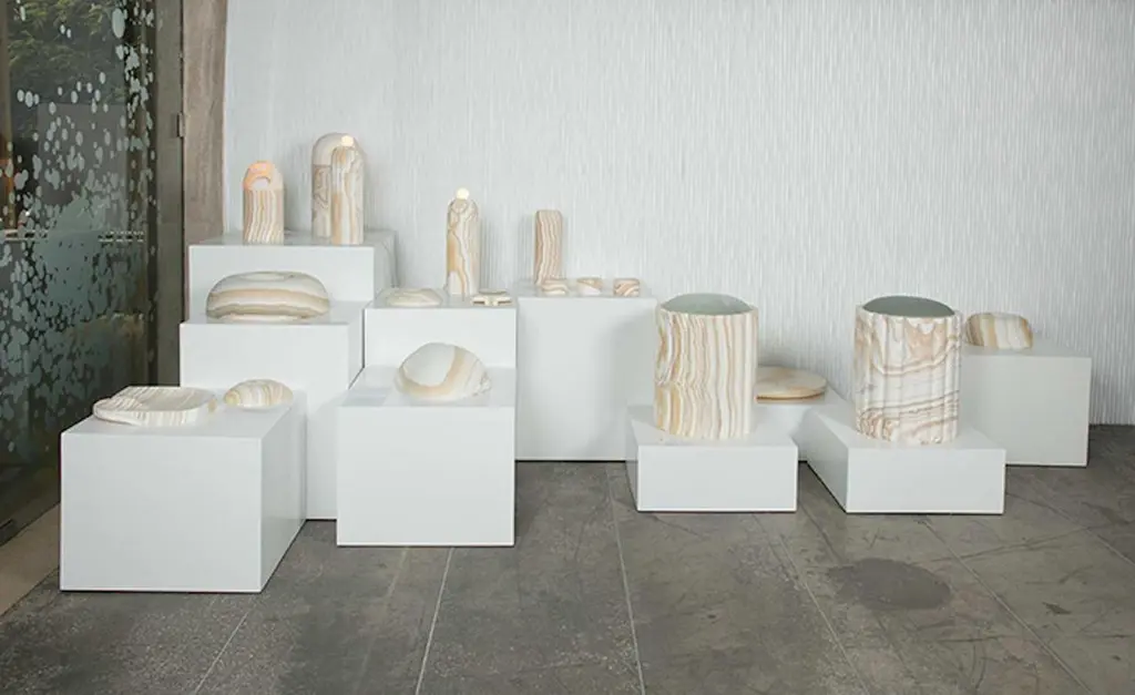 Of Egyptian/Lebanese roots, Omar Chakil developed the series, volutes, made of unvarnished, untreated, raw Egyptian alabaster which he calls Pharaonic alabaster to differentiate it from other kinds of onyx marbles. Launched during Beirut Design Fair 2018 and ‘House of Today’ Biennale, the series examines the energy of movement and sensuality inspired by the stone’s ancient healing, mystic and soothing swirl-like motifs. “The idea was to find an emblematic Egyptian mineral and use it to create contemporary objects that would build bridges between past and present, craft and design, earthly and ethereal...”, says Chakil. Volutes is entirely handmade in Egypt merging his Egyptian roots with his French aesthetic heritage through sobriety and grace.