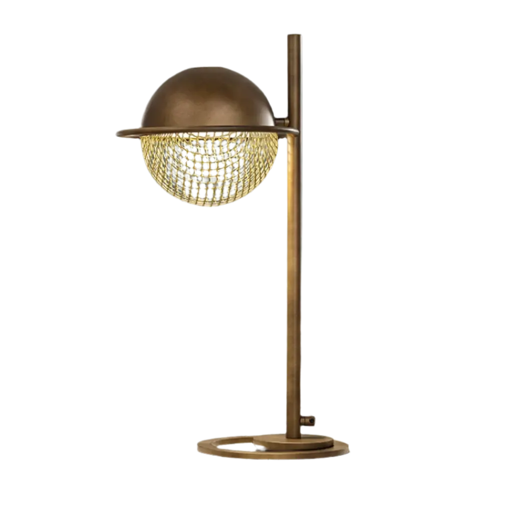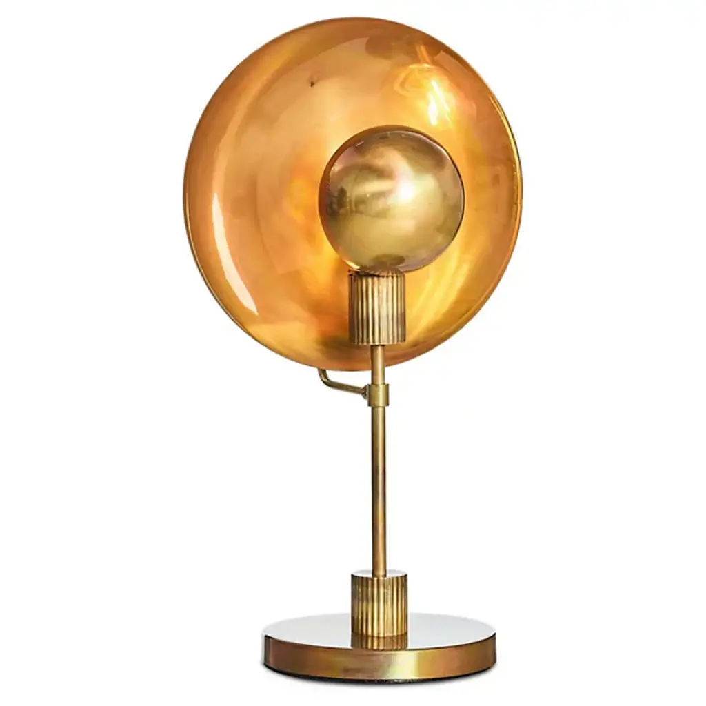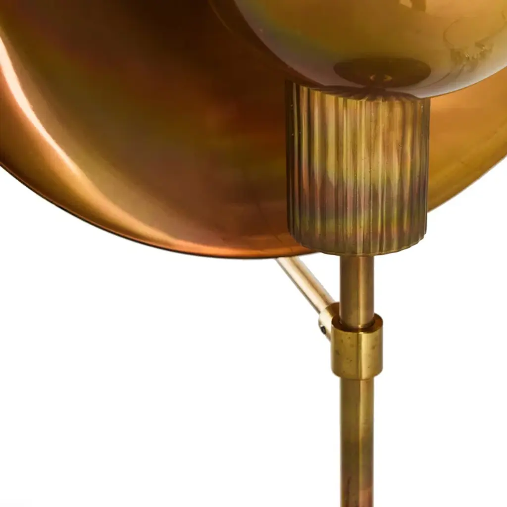 Artfully diffused lighting inspired by 1920s glam. A glowing disc nestles within a curved brass reflector, creating a warm, expansive ambiance. Reeding detail on the socket and stem add texture, while a hand-burnt brass finish ensures each piece ages uniquely, developing character over time.