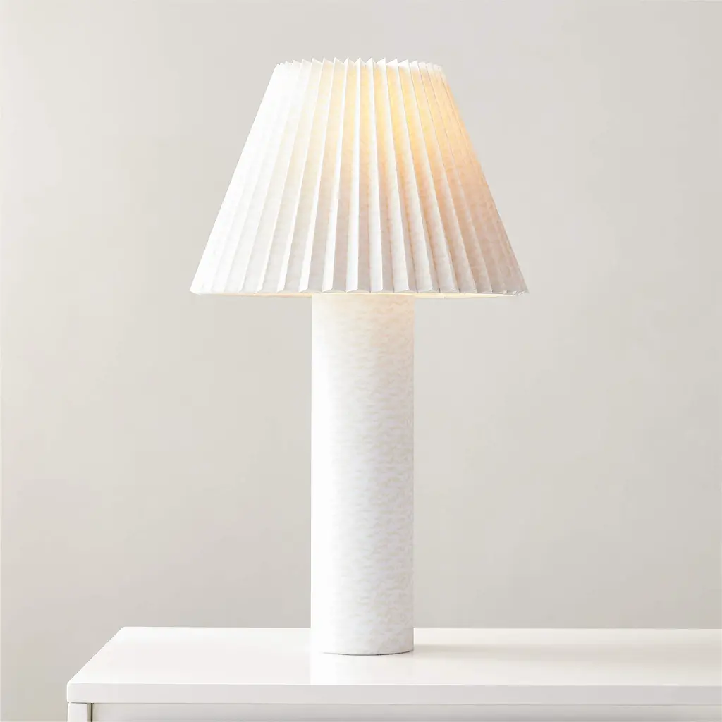 Designed by London-based Studio Anansi, pieced vellum table lamp combines a sleek, sinuous base with a precisely pleated shade. Considered details include touches of polished brass in the harp and neck. Brass is unlacquered, offering a living finish that will develop the patina of a vintage find. CB2 exclusive.