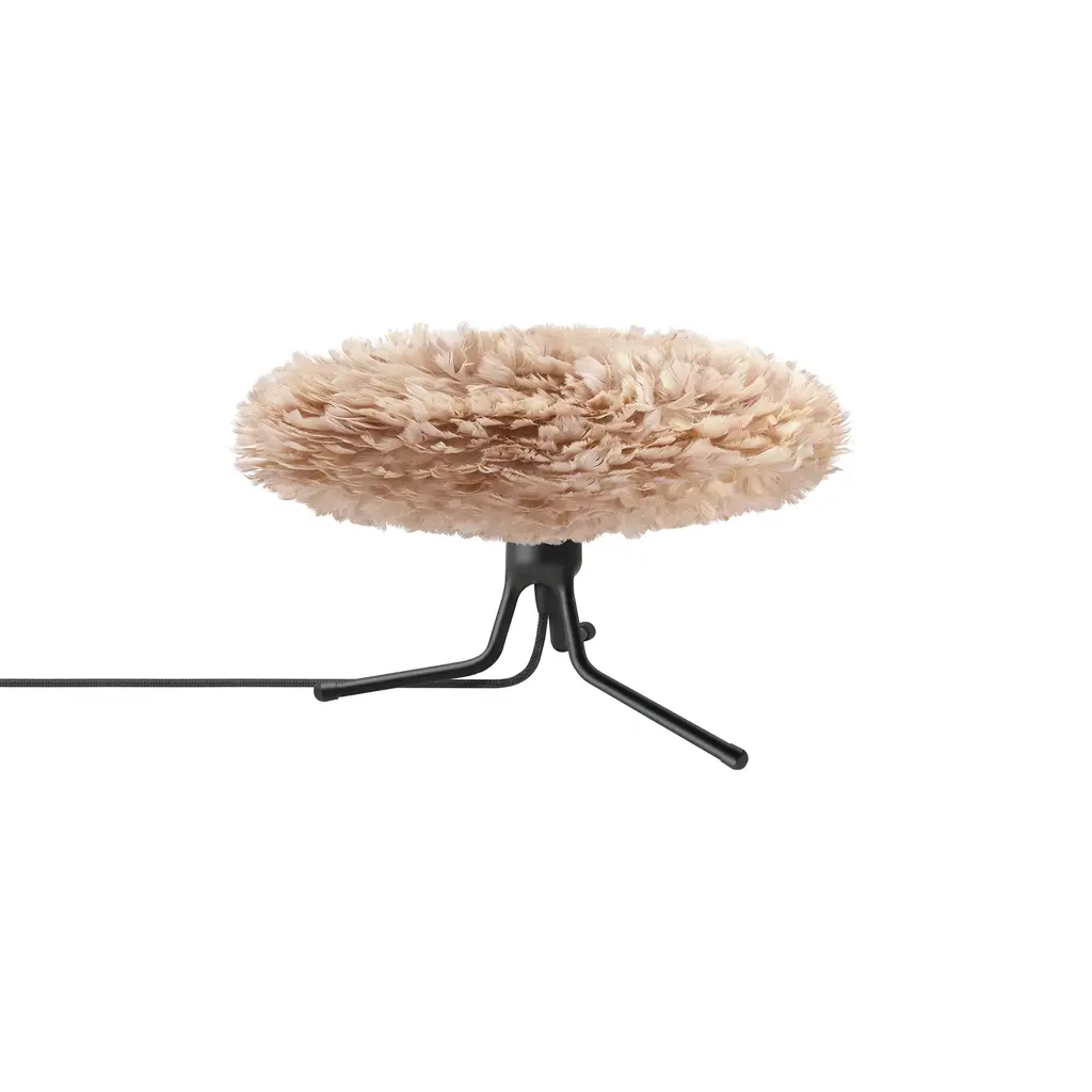 Umage melds a glamorous statement with convenient adaptability in an Eos Esther feather-fluffed light with an adjustable table stand. Designer Sřren Ravn Christensen's dramatic oval fluff of natural goose feathers lends a chic accent in a choice of 5 Nordic-inspired colors, diffusing the LED illumination to a warm and even glow. Available in medium or large versions to grace a console, table or sideboard, the lamp's classic tripod stand offers variable height positions.