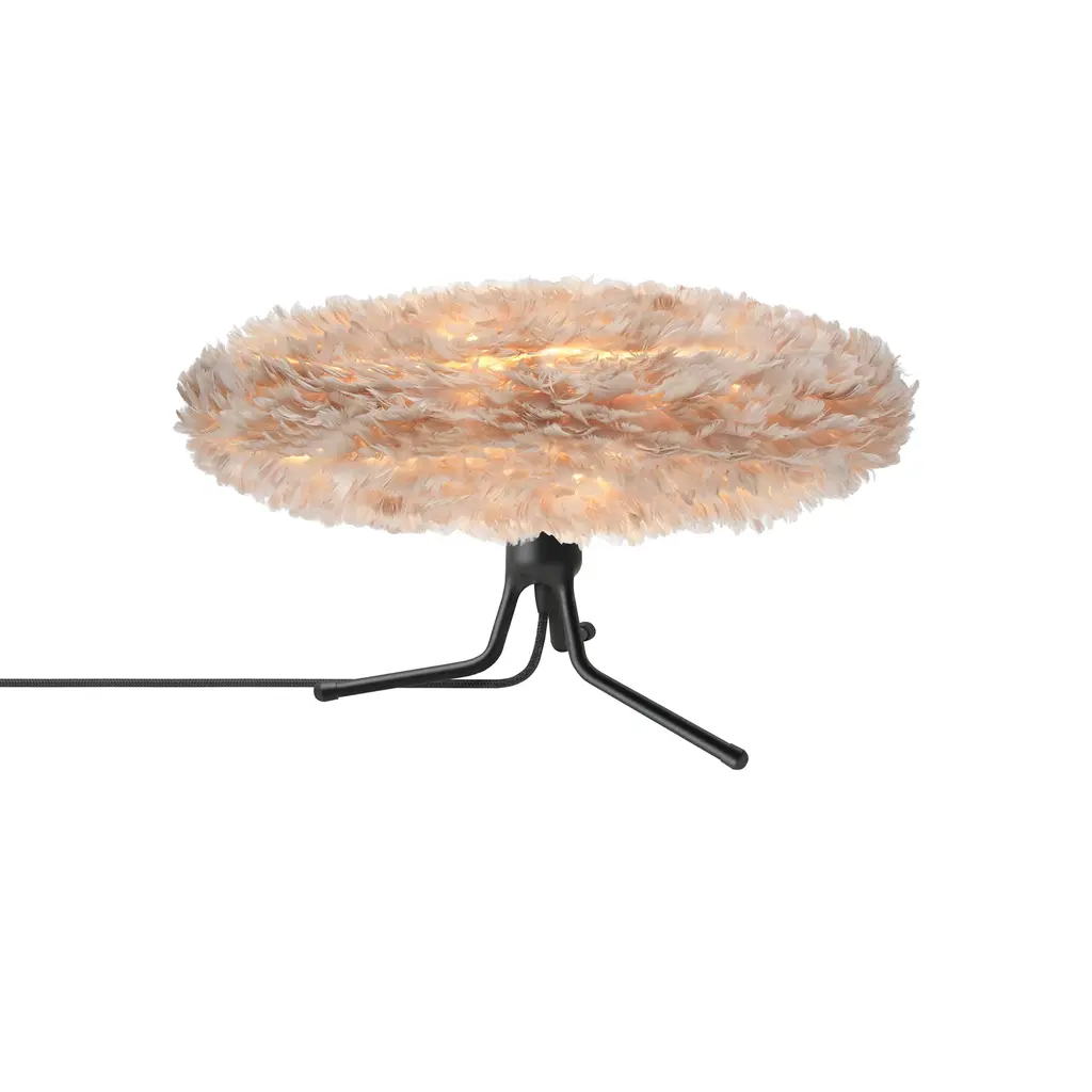Umage melds a glamorous statement with convenient adaptability in an Eos Esther feather-fluffed light with an adjustable table stand. Designer Sřren Ravn Christensen's dramatic oval fluff of natural goose feathers lends a chic accent in a choice of 5 Nordic-inspired colors, diffusing the LED illumination to a warm and even glow. Available in medium or large versions to grace a console, table or sideboard, the lamp's classic tripod stand offers variable height positions.