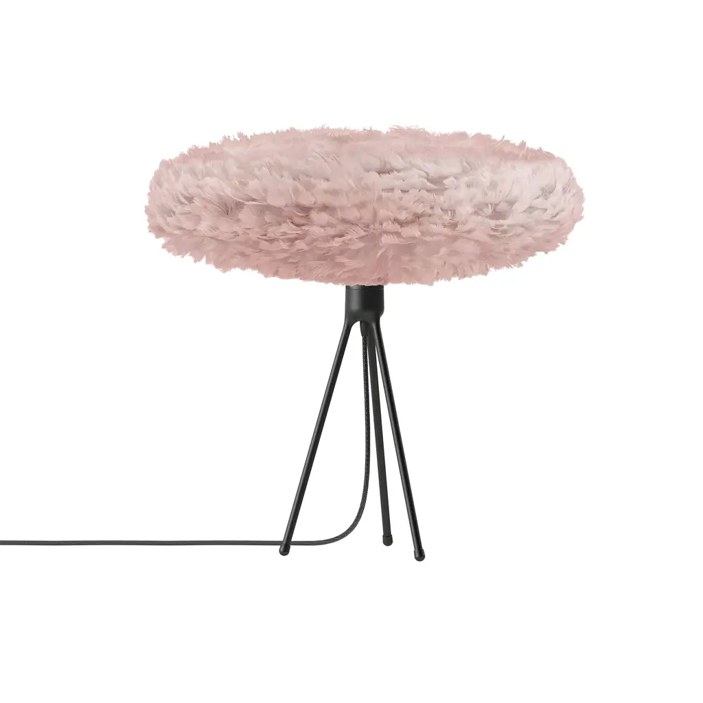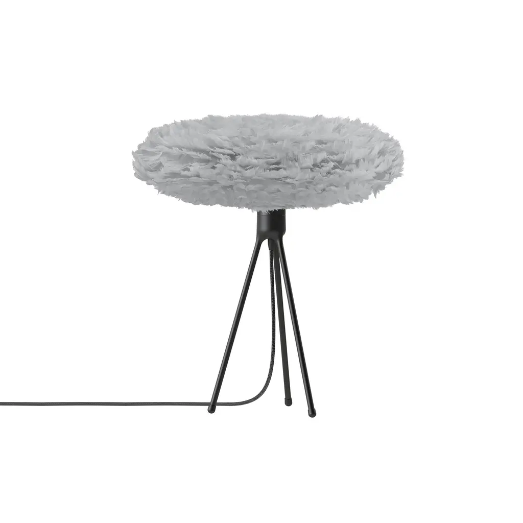 As a counterpoint to Eos Esther's feathery oval, designer Sřren Ravn Christensen pairs it with an understated 3-legged table stand. Umages eye-catching lamp provides warmly even LED illumination when placed on a console, desk or night table, diffused with a puff of fluffy natural goose feathers. In Nordic-inspired hues, it pairs easily with the clean-lined Tripod base in complementary tones of matte black or white.