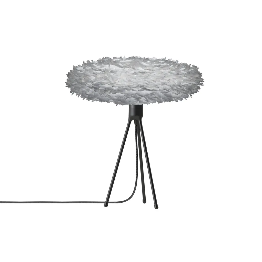 As a counterpoint to Eos Esther's feathery oval, designer Sřren Ravn Christensen pairs it with an understated 3-legged table stand. Umages eye-catching lamp provides warmly even LED illumination when placed on a console, desk or night table, diffused with a puff of fluffy natural goose feathers. In Nordic-inspired hues, it pairs easily with the clean-lined Tripod base in complementary tones of matte black or white.