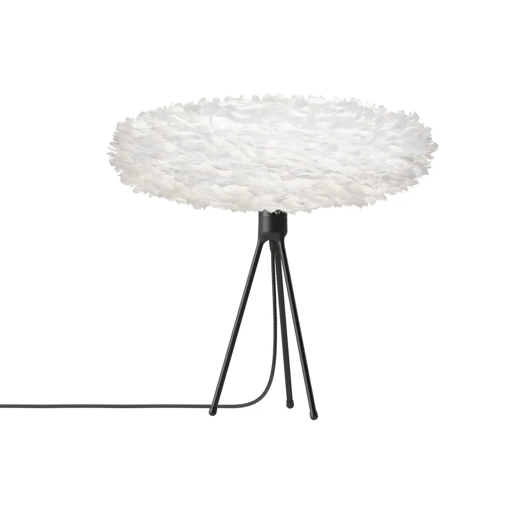 As a counterpoint to Eos Esther's feathery oval, designer Sřren Ravn Christensen pairs it with an understated 3-legged table stand. Umages eye-catching lamp provides warmly even LED illumination when placed on a console, desk or night table, diffused with a puff of fluffy natural goose feathers. In Nordic-inspired hues, it pairs easily with the clean-lined Tripod base in complementary tones of matte black or white.
