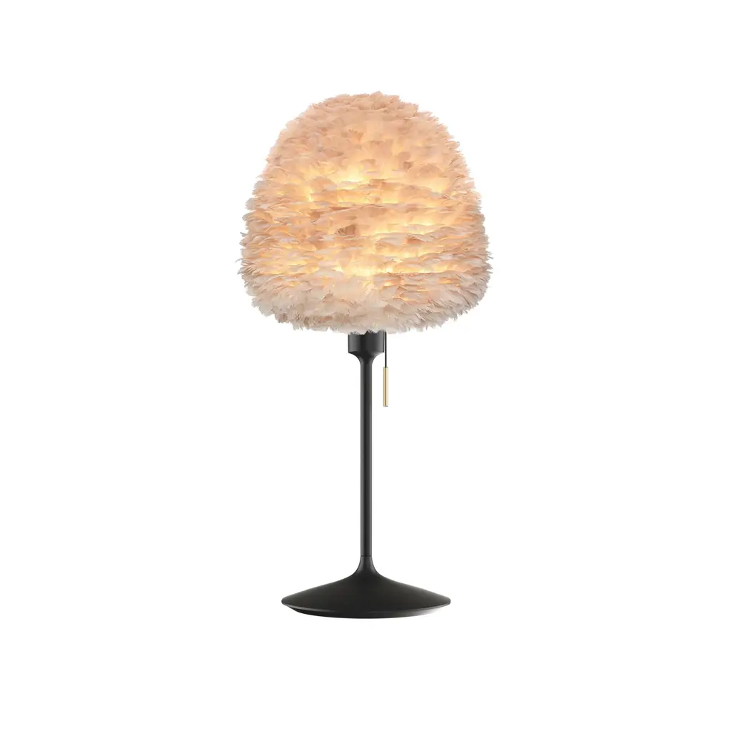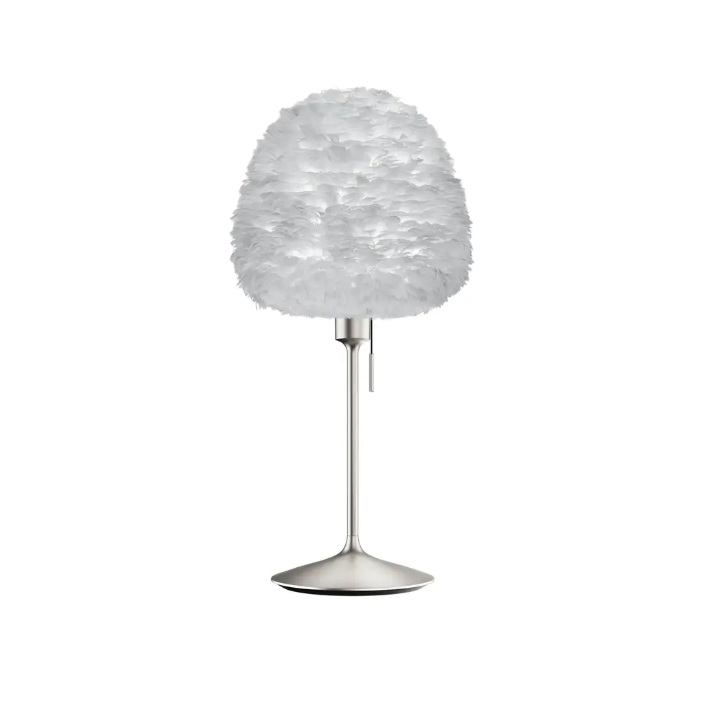 Eos' namesake is the mythological goddess of the dawn and this fizzy Evia variation tops a table stand modeled on a stem of a champagne flute. Not just a ball of fluff, the lamp also has a practical side with a USB port for charging a phone or tablet even when switched off. In a choice of 5 Nordic-inspired hues and 2 sizes, the feathery shade spreads warm LED illumination. The slender stand adds its own glamour in brushed steel, brushed brass, black or white.