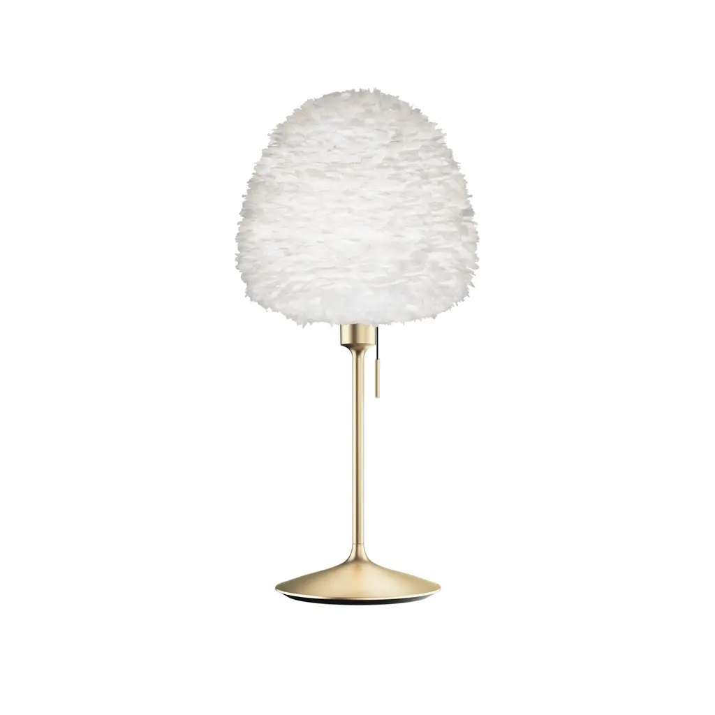 Eos' namesake is the mythological goddess of the dawn and this fizzy Evia variation tops a table stand modeled on a stem of a champagne flute. Not just a ball of fluff, the lamp also has a practical side with a USB port for charging a phone or tablet even when switched off. In a choice of 5 Nordic-inspired hues and 2 sizes, the feathery shade spreads warm LED illumination. The slender stand adds its own glamour in brushed steel, brushed brass, black or white.