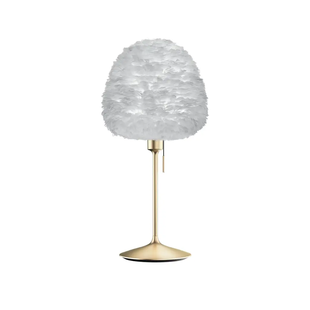 Eos' namesake is the mythological goddess of the dawn and this fizzy Evia variation tops a table stand modeled on a stem of a champagne flute. Not just a ball of fluff, the lamp also has a practical side with a USB port for charging a phone or tablet even when switched off. In a choice of 5 Nordic-inspired hues and 2 sizes, the feathery shade spreads warm LED illumination. The slender stand adds its own glamour in brushed steel, brushed brass, black or white.