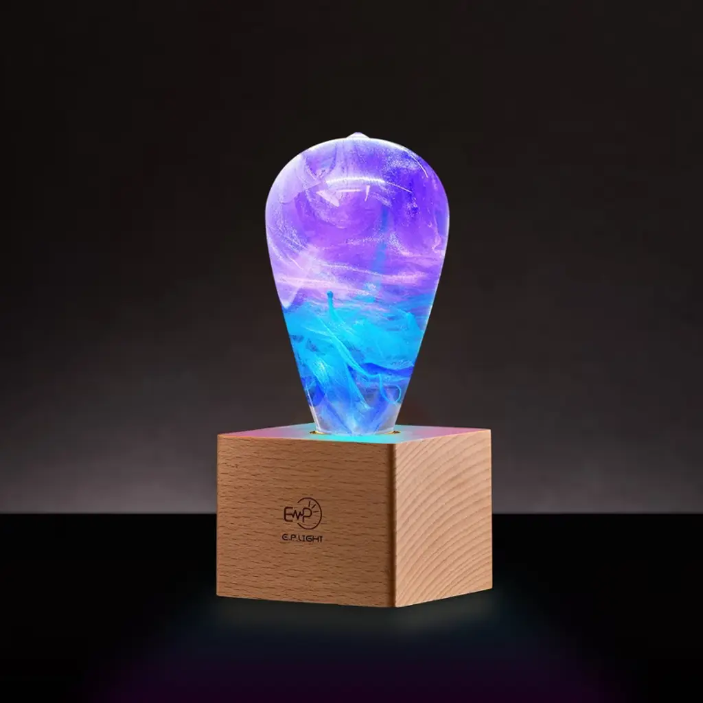 Overview:Comprised of a team of visual artists, designers, and creatives, E.P. Light is passionate about bringing beauty and creative energy to every home and office. Our collection of mesmerizing, LED light fixtures feature strong creative influences from legendary artist Jackson Pollock— resulting in a gorgeous and unique piece of ambient lighting that will transform your space with abstract expressionist style.Features:— EP LIGHT BULB IS LIKE THE COMMON LED BULB, CAN BE USED IN ANY REGULAR LAMP OR LIGHT BASE— Individually Handcrafted— Highest Quality, Eco-Friendly Resin Construction— Durable & Drop Resistant— Never Hot To The Touch— Requires 63% Less Energy Than Traditional BulbsBulb technical details:— Voltage: 110V— Bulb Type: LED— Bulb Socket: E27- E26— Dimmable: No— Wattage: 1.5W— Lumens: 100lm— Color Temperature: 6000K— Bulb Lifetime: 50,000 Hours— Color Rendering Index: 90— Suitable For Outdoor Use: Yes— Certifications: CE, FCC, RoSH— Measures 2.4"L x 2.4"W x 6.3"H— Weight: 0.35 lb— Includes LED Bulb + Cube Wooden Base— 3.3 ft. Wall Plug (110V)— Weight: 1.1 lb— Materials: Resin, Beech Wood— Origin: China— Warranty: Manufacturer's 1 Year