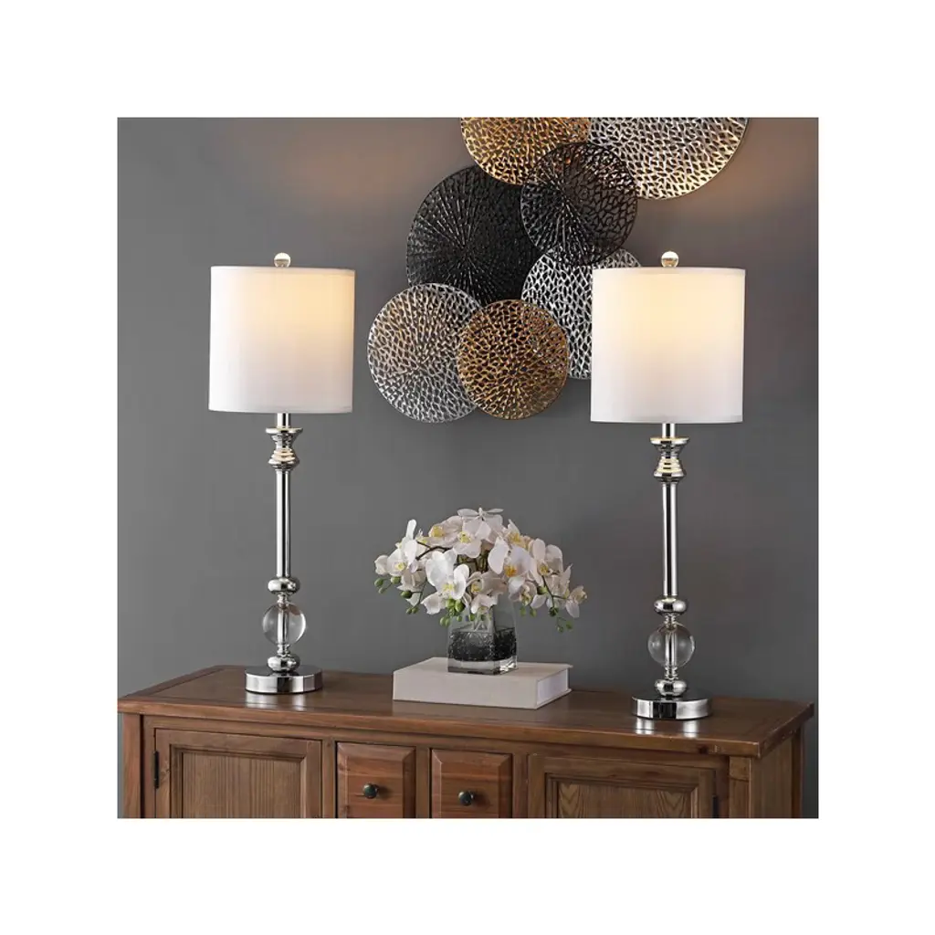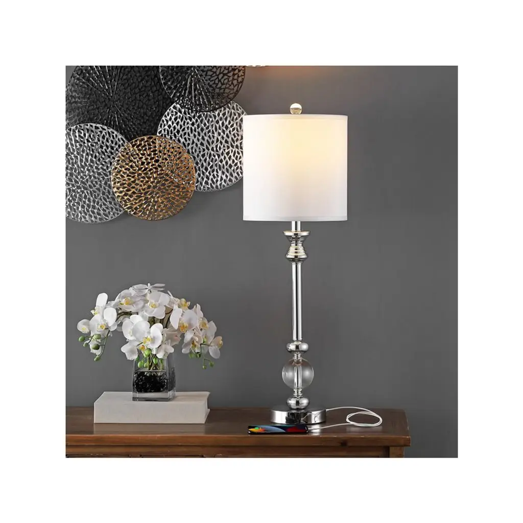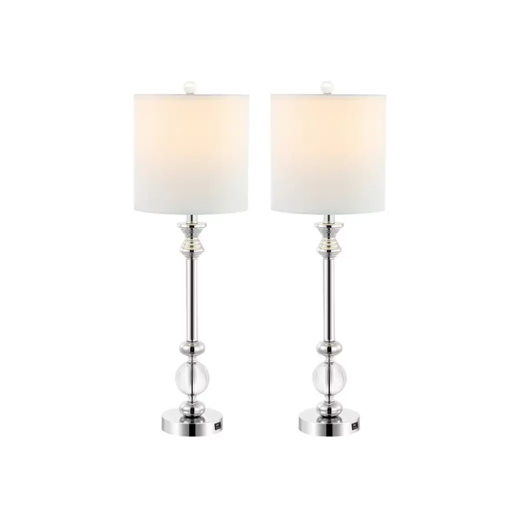 Illuminate your space with the Erica crystal table lamp set. Standing at 31 inches, this pair is a stunning blend of crystal and metal, embodying elegance in every detail. Its crystal finish captures light beautifully, adding a touch of brilliance to any room. The design combines a classic look with a contemporary twist, making it perfect for both modern and traditional interiors. Each lamp comes with a built-in USB port, offering convenience for charging your devices right at your fingertips. Whether placed in your living room, bedroom, or office, these lamps will enhance any decor with their radiant charm. Experience both functionality and style with the Erica crystal table lamp set - a perfect solution for your lighting needs.
