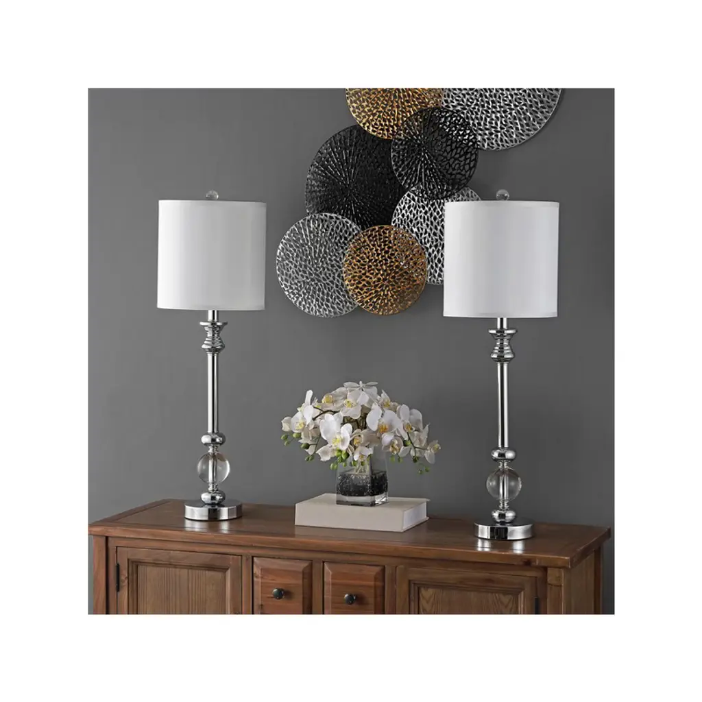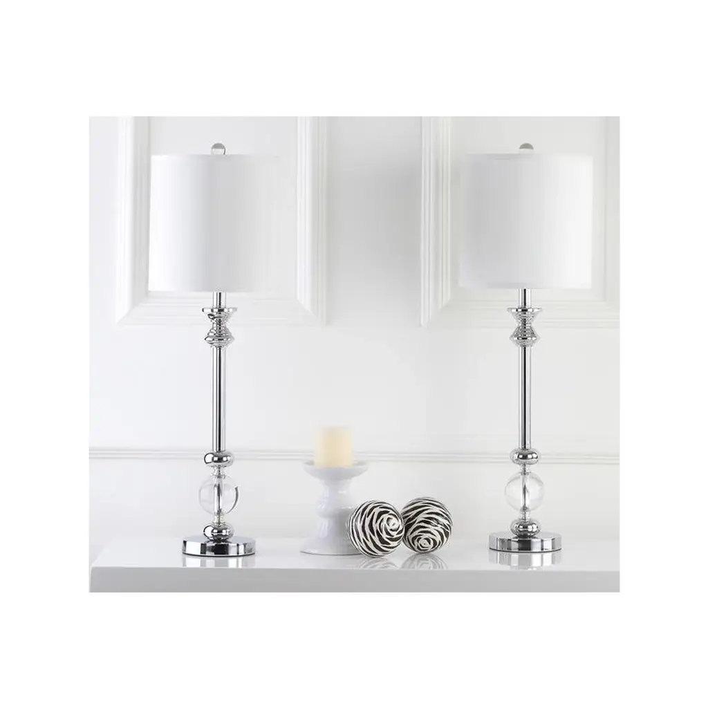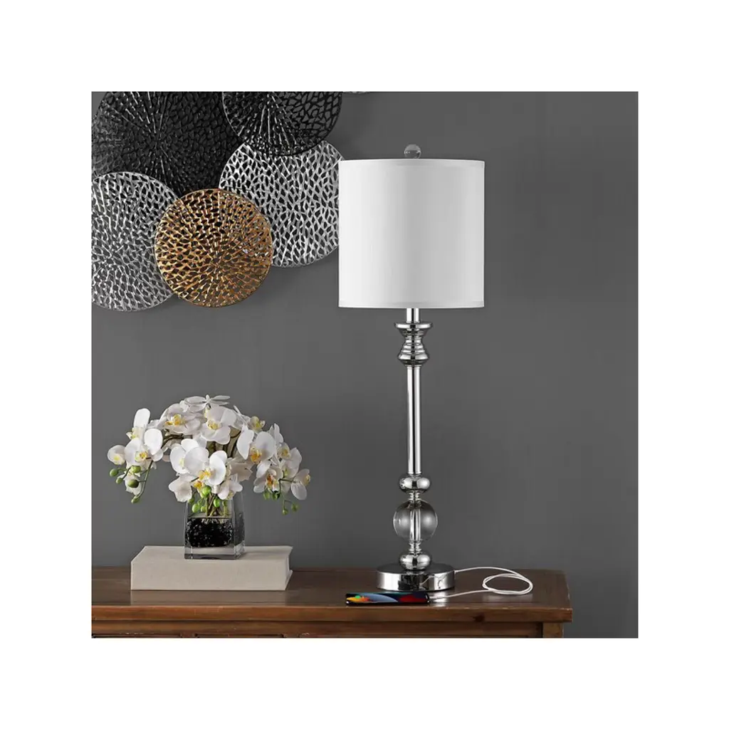 Illuminate your space with the Erica crystal table lamp set. Standing at 31 inches, this pair is a stunning blend of crystal and metal, embodying elegance in every detail. Its crystal finish captures light beautifully, adding a touch of brilliance to any room. The design combines a classic look with a contemporary twist, making it perfect for both modern and traditional interiors. Each lamp comes with a built-in USB port, offering convenience for charging your devices right at your fingertips. Whether placed in your living room, bedroom, or office, these lamps will enhance any decor with their radiant charm. Experience both functionality and style with the Erica crystal table lamp set - a perfect solution for your lighting needs.