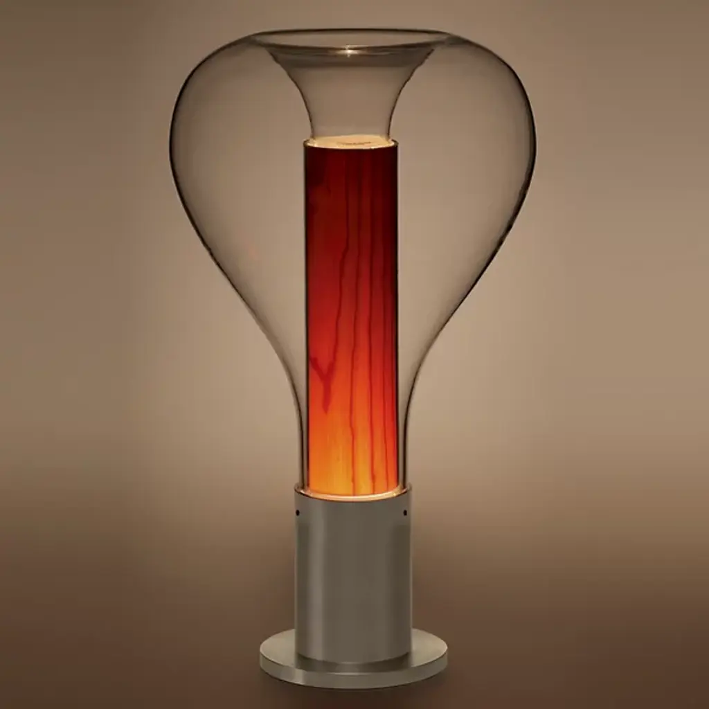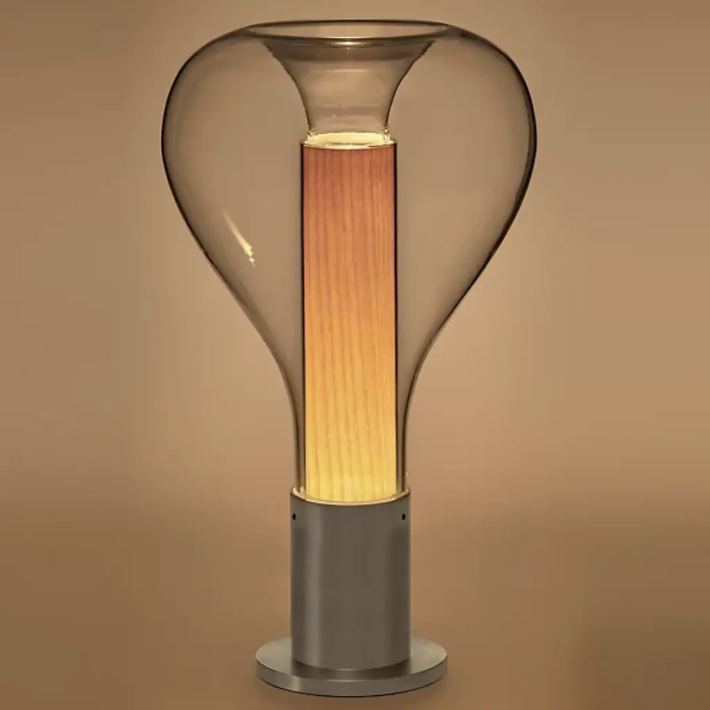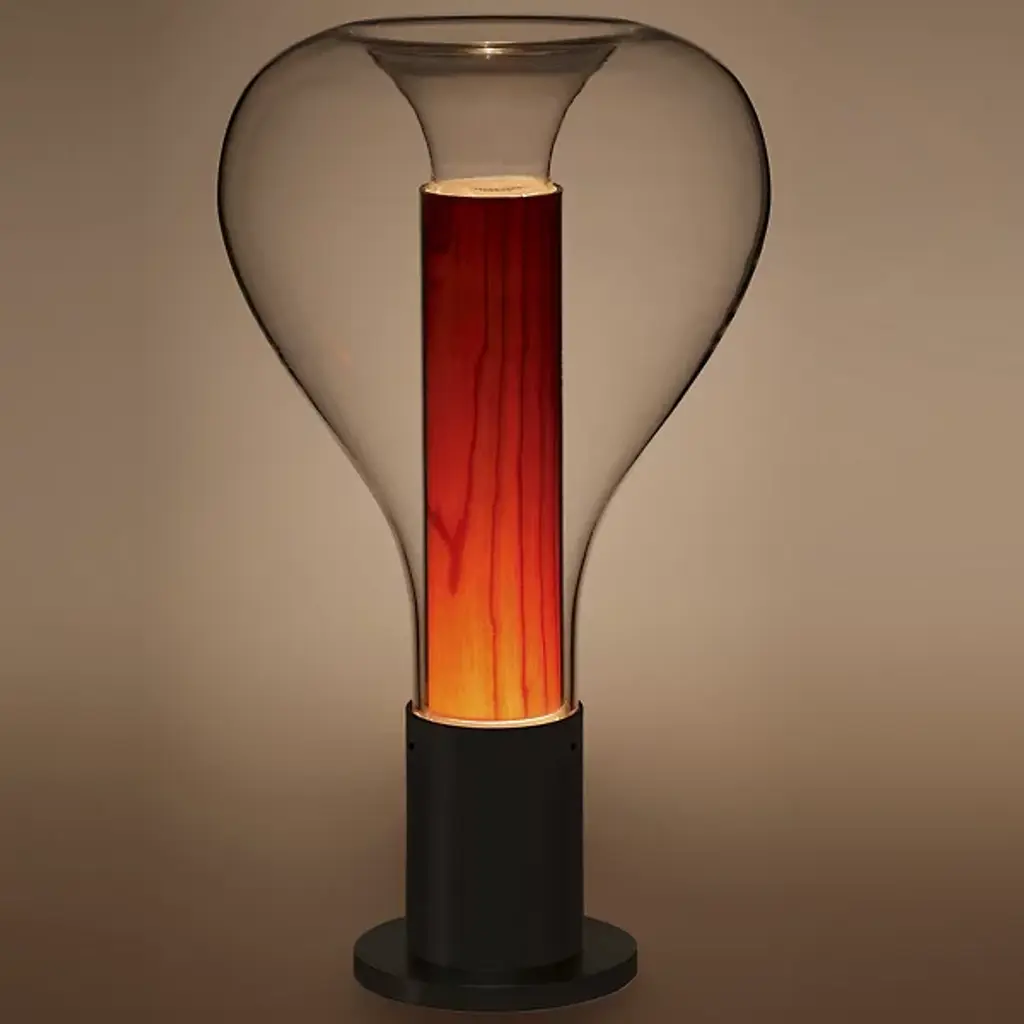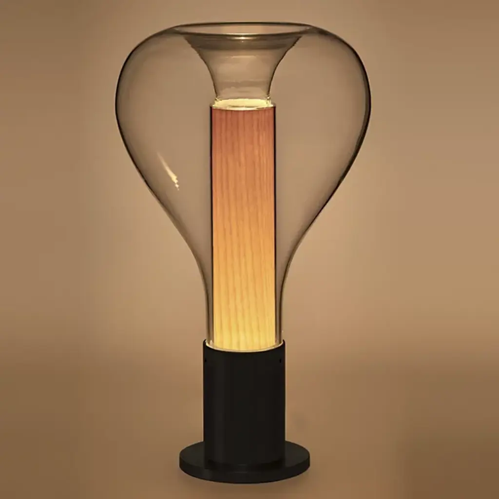 Bring a touch of ambiance to the surfaces of your home with the clean and welcoming silhouette of the Eris Table Lamp from LZF. Designed by Mayice studio in 2020, this modern piece uses mixed materials to maximum potential with a smooth, cylindrical metal base that sprouts an inner wood veneer shade. An outer bulbous, clear glass shade gently encloses upon the wood, framing it as an inviting demonstration of design possibility. An integrated LED resting inside the base sends out a warm glow that fills the wood, and the surrounding space, with life.