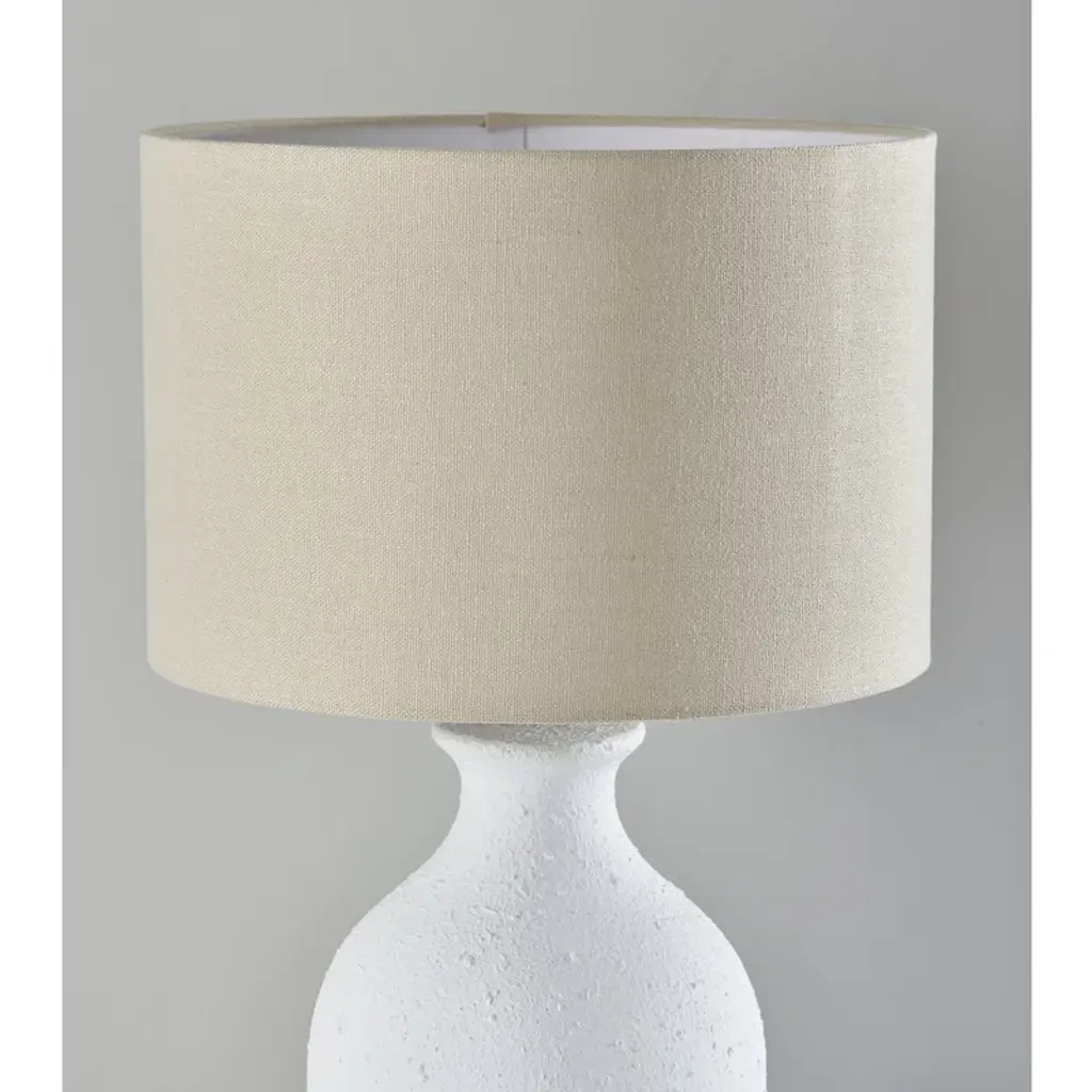 Illuminate your bedside or living space with this elegant ceramic table lamp. Featuring a single light with a rotary socket switch, it's perfect for casting a warm glow in any room. The textured fabric drum shade adds a touch of sophistication, while the E26/Medium (Standard) bulb base accommodates a 100-watt A19 bulb (not included). Designed for dry locations, this versatile lamp is a lovely addition to any home. Plus, the downward and upward light direction ensures a cozy atmosphere for late-night reading or relaxing.