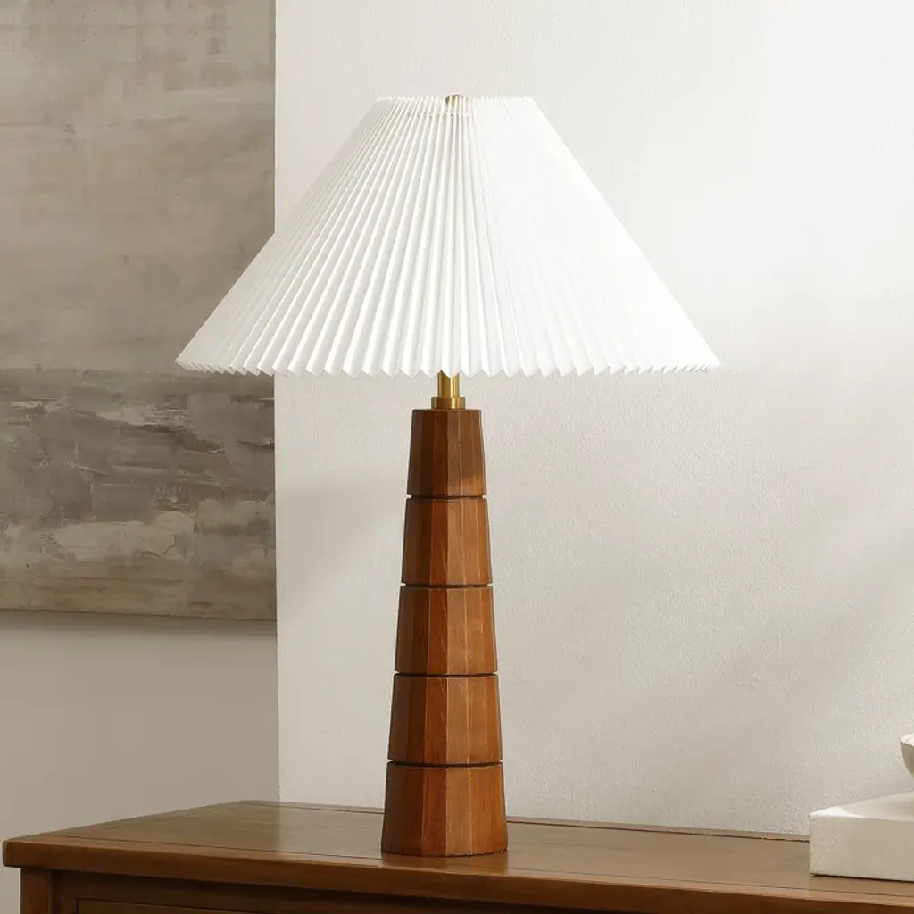 Add a touch of refined allure to your living space with the Erso table lamp. Designed to captivate, this exquisite lamp boasts a tapered body adorned with multi-faceted surfaces, meticulously crafted from resin and finished to emulate the rich, dark tones of natural wood.