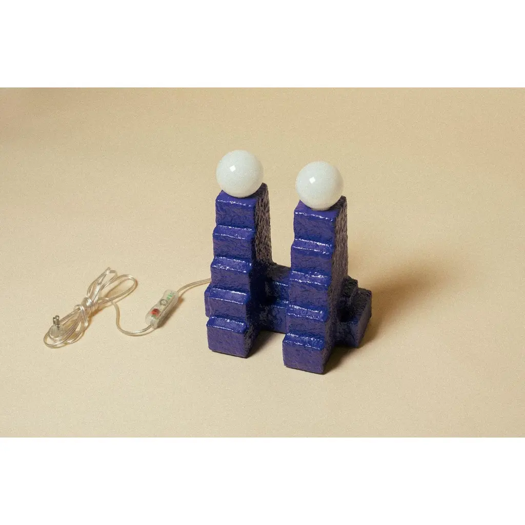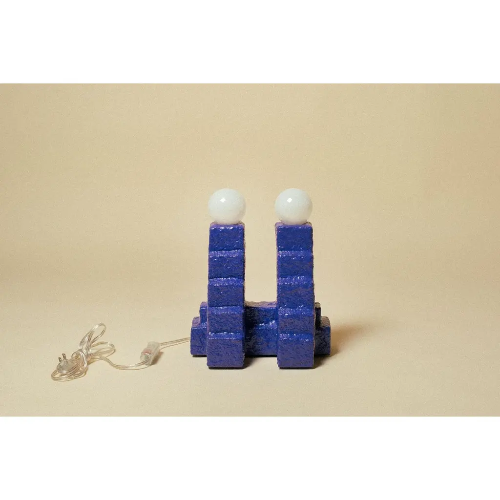 Escalera Doble Table Lamp by Algo StudioDesigned by Diego GarzaDimensions: D 30 x W 18 x H 36 cmMaterials: Plywood, MDF, PVA Glue, Sand, Steel.Also available in different colours. Please contact us. LED bulb 3 ” with dimmer ( 3200 Kto 1800K)Algo Studio, based in Monterrey, Mexico, was founded in 2019 by Diego Garza, architect with a MFA in furniture design by RISD in 2015.Our goal is to be a constant creation laboratory on product, furniture and lighting design. We have our own workshop where we produce some of our pieces. Our creative method is based on working firsthand with materials and techniques in order to create new results.We seek to create elementary objects with a soul. Objects with a warm, grounded vibe, expressing something interesting to the senses.With the intention to keep things fresh and be able to constantly regenerate our proposals most of our lots are all small and limited.All our lamps can be wired according to each country. If sold to the USA it will be wired for the USA for instance.
