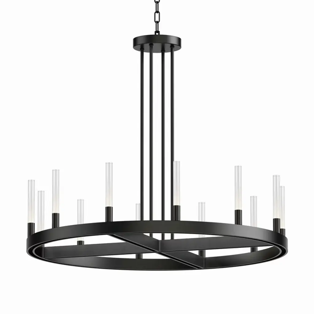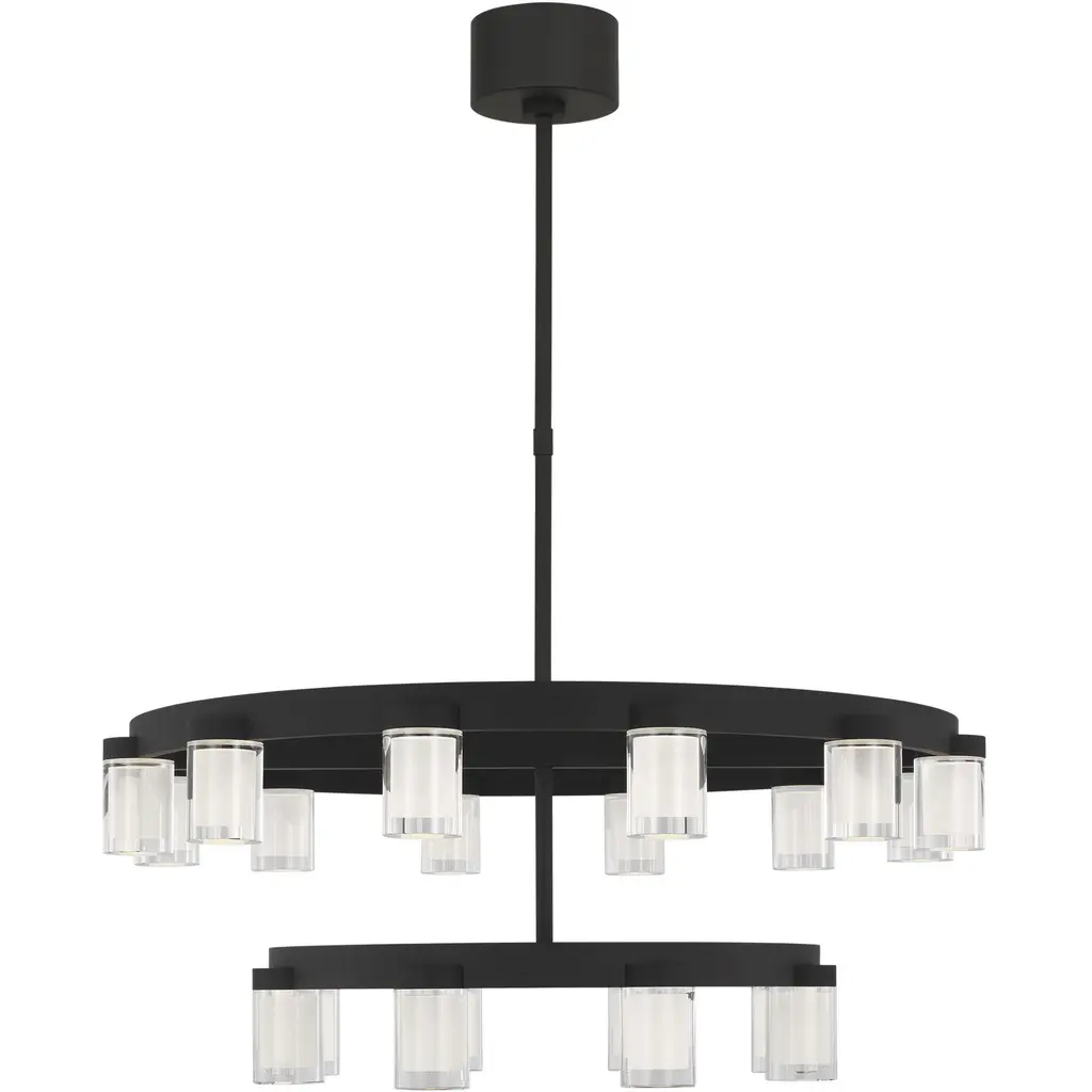 Enliven interiors with the layered contemporary character of the Esfera 2-Tier LED Chandelier from Visual Comfort Modern. A Kelly Wearstler creation, it sweeps down from a circular canopy, sending a slender central stem down through round ring structures below, placing an array of small but strong LED lamps around each outer edge. Each lamp is placed inside a small cylinder shade of glass, which moderates bright glare into an even glow that enlivens its surroundings.