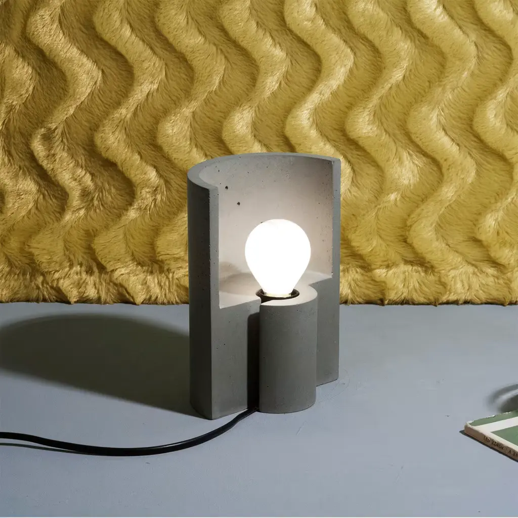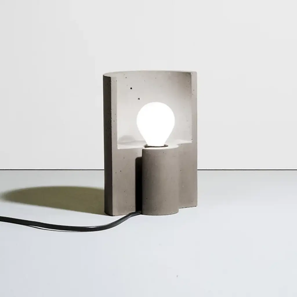 The Esse Lamp is a project born as a reaction to the Covid-19 health emergency in early 2020, a historical moment that forced the world into a lockdown, depriving society of all social contact. The name of the lamp and its monolithic shape convey the sense of essentiality, reinforced by the material used. Entirely handcrafted of concrete, the lamp features a half-cylinder shape silhouette with a single side slot for the electrical cable (180 cm) and requires a LED E12 Max 8W bulb (not included). Available also in red and yellow upon request.