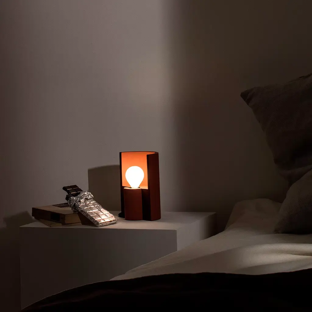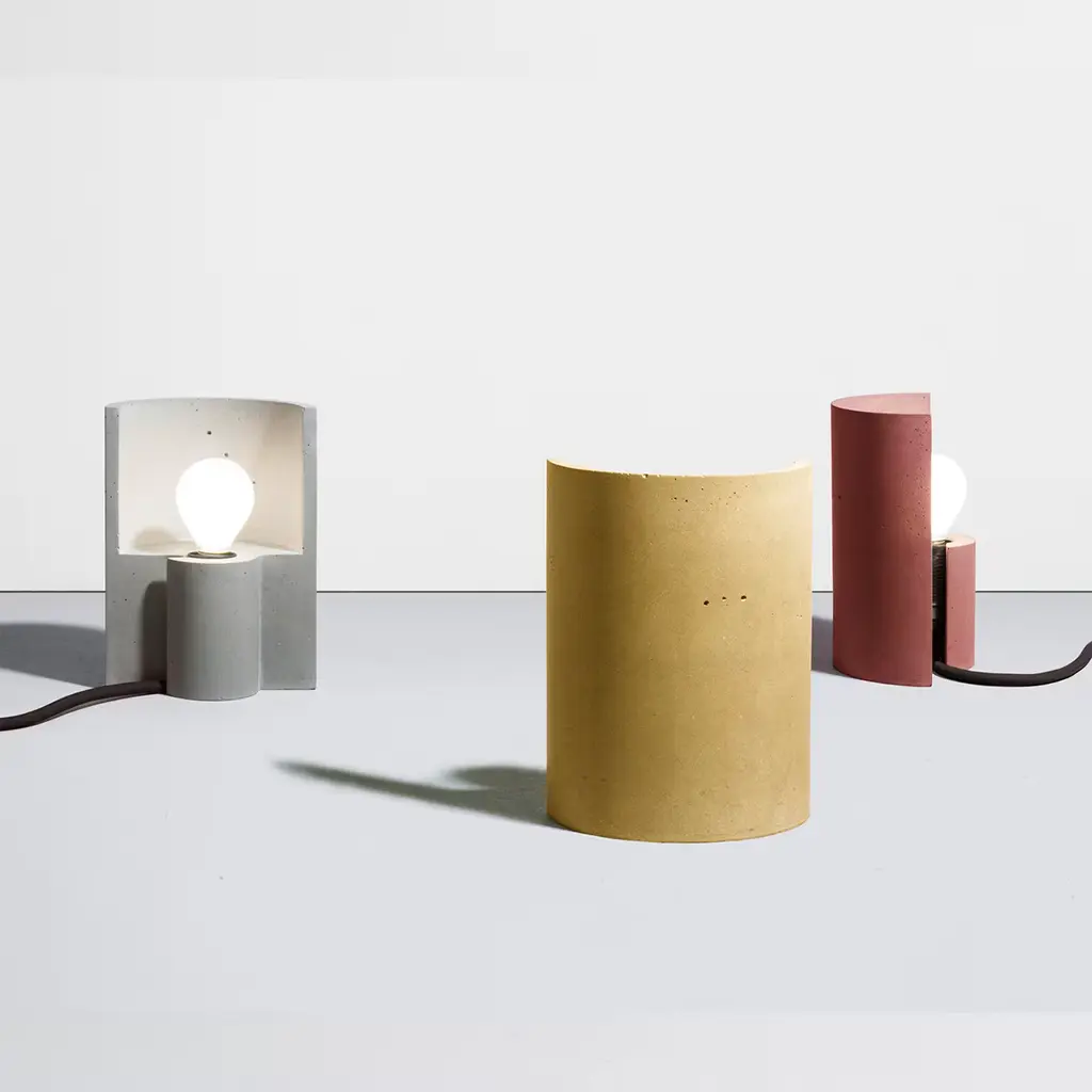 The Esse Lamp is a pilot project born in the spring of 2020 directly influenced by events triggered by Covid-19. The monolithic shape is handcrafted of concrete to express its minimalistic, essential (hence the name) design. Featured in red, it is available also in gray and yellow, three primary colors that conceptually reflect its basic function, providing direct and shielded light through its half-cylinder shape. Designed only for internal use, the wire inserted in the lateral slot measures 180 cm. Recommended light bulb LED E12 Max 8W (not included).