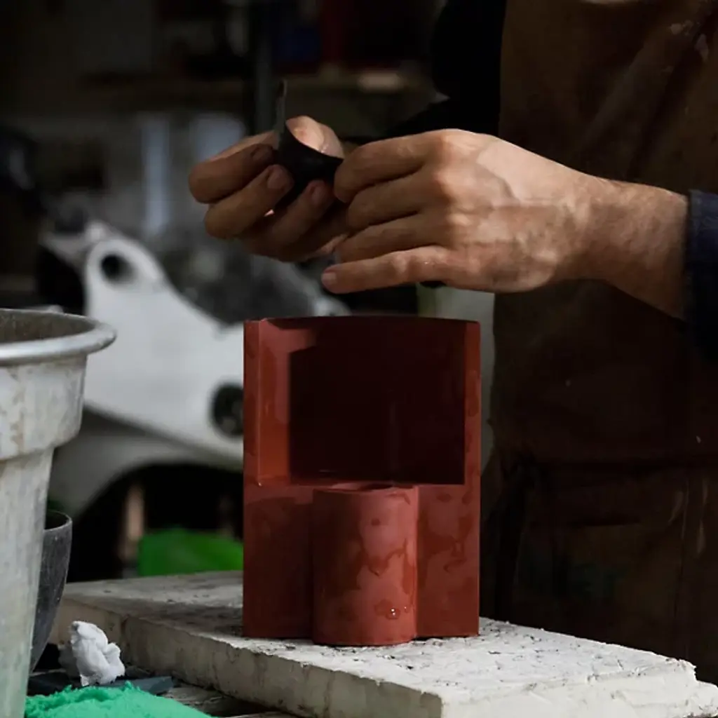 Short for ‘essential,’ the Esse Table Lamp from Plato Design frames its lamping inside charming tactile geometry, crafted to direct light and ease its glare. The piece’s refined personality speaks to the shift in production and design brought on during the pandemic. The limitation of the time informs the table lamp’s minimalist silhouette and monolith construction. Made from tactile concrete, cylindrical shapes make up the piece’s base and shade. The open slot base lets one’s wired lamp holder slot in with no equipment. The top cavity of the cylinder eases glare and directs ambient light in the opposite direction.