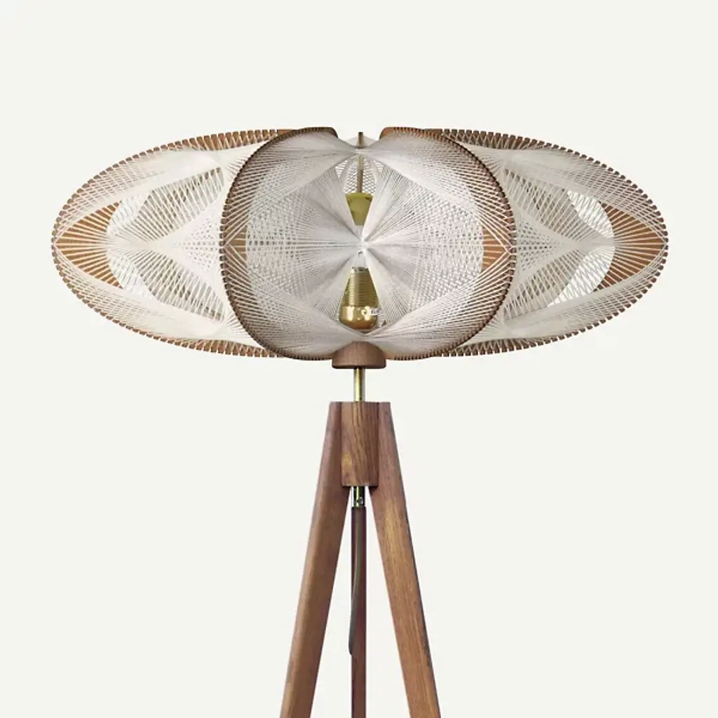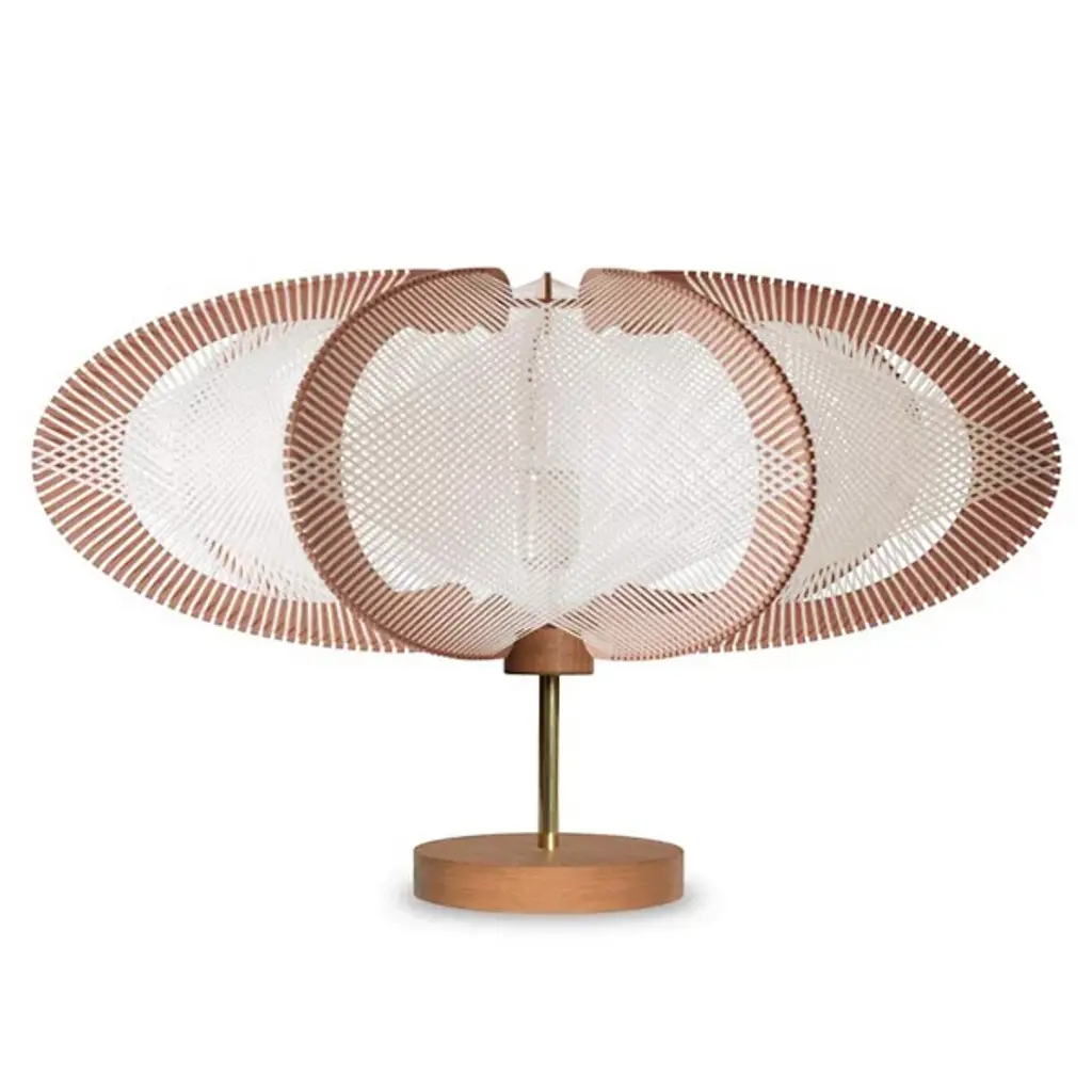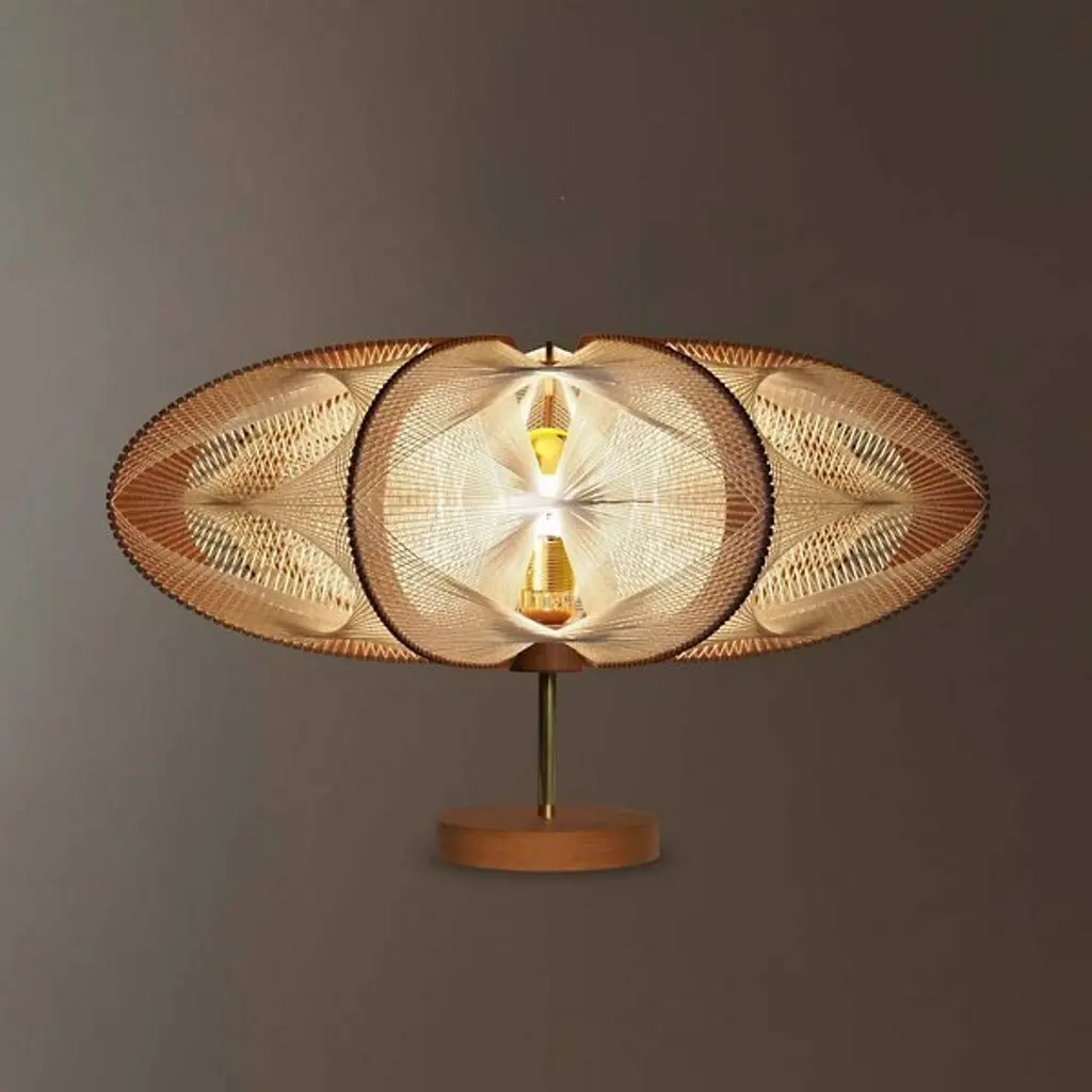 The Etiola Table Lamp from LaFabLight is a timeless expression of French craftsmanship, showcasing artisanal elegance through meticulous handmade details. Made to order, the lamp’s airy structure features curved wooden ribs—sourced from French forests—that rise to form a flattened elliptical shape. These ribs are wrapped in a handwoven ecru cotton shade, creating a soft, geometric silhouette. When illuminated, the net-like fabric diffuses a warm glow while casting subtle, lattice-like shadows around it.