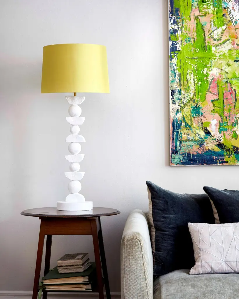 New collection: This contemporary Margit Wittig table lamp sits on a round base . The material Wittig chose for this unique 21st century table lamp is cast epoxy white resin, which gives this functional object of art a visual focus for luxury interiors.Margit Wittig is inspired by modern artists and sculptors such as Giacometti and Ivon Hitchens. Her work is constantly evolving using different textures as the driving force - intertwined with her work with color. Her functional art spreads the gamut from modern simplicity to rich and complex designs and color. Her objects include paintings, occasional furniture, home accessories and sculptures. Wittig's pieces - all made in her London studio - are placed with collectors around the globe. Please note: Although our lights are wired using UL listed components for the US, each light fitting is not UL listed. Dimensions of lamp base - 62cm tall, 18cm diameter.