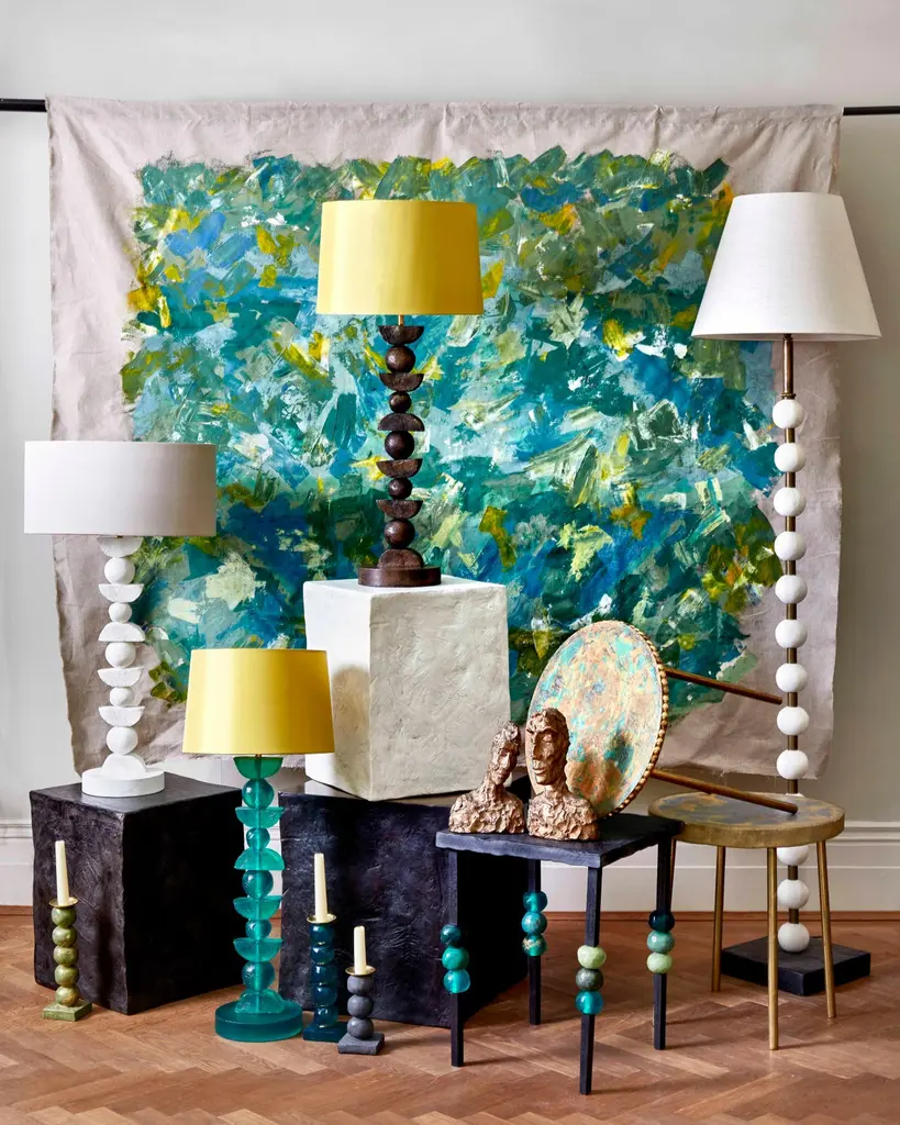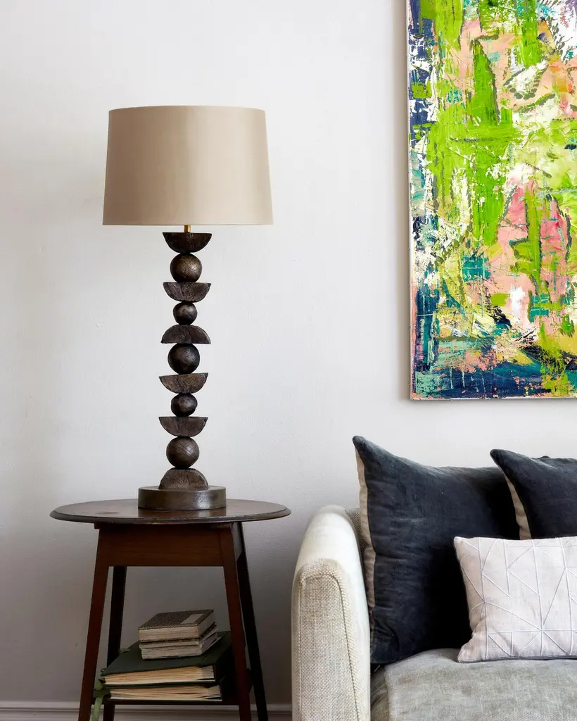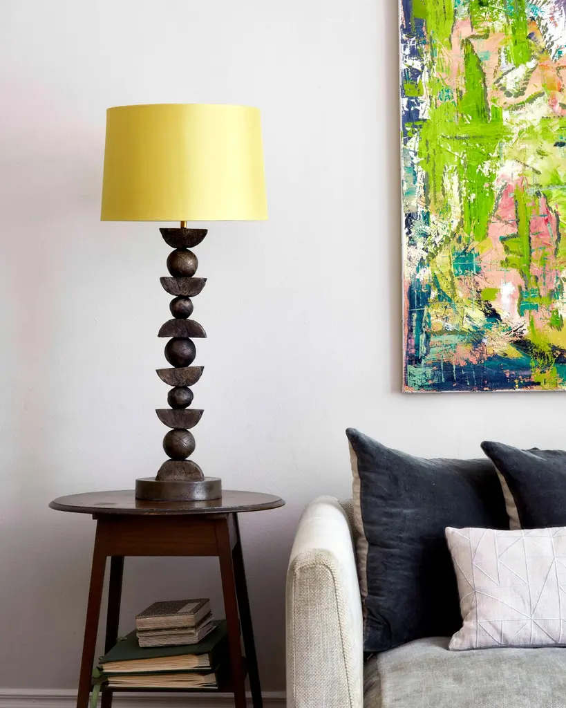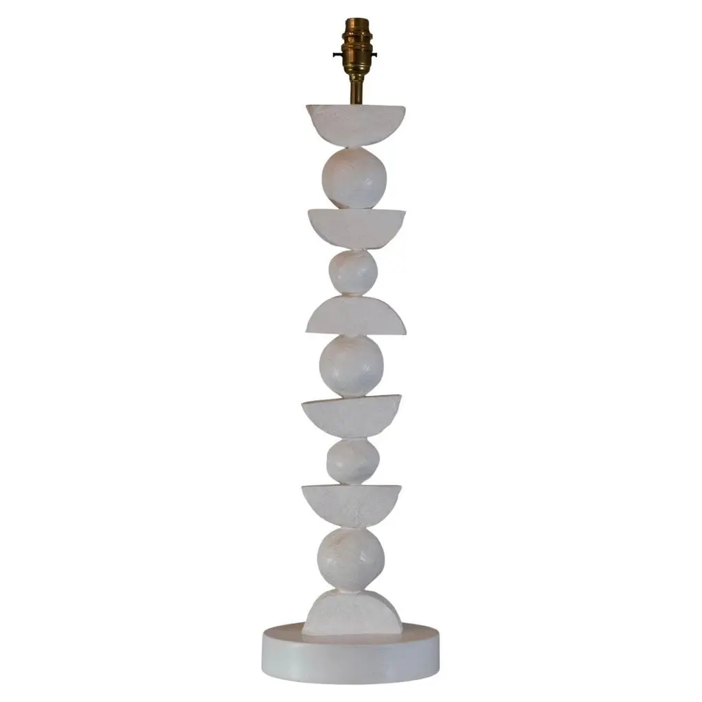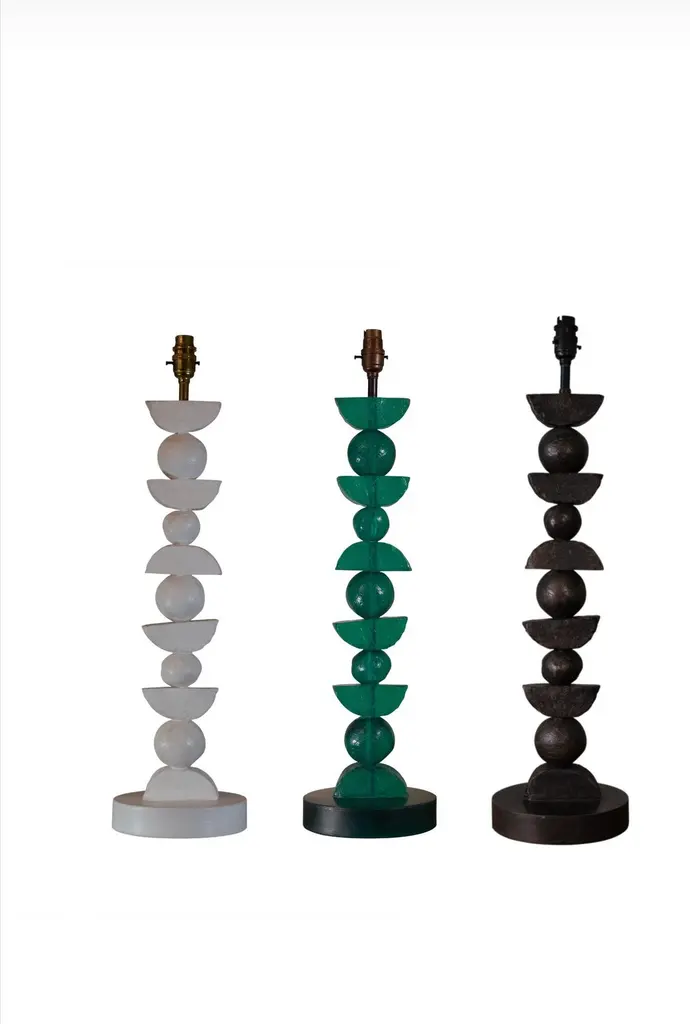New collection: This contemporary Margit Wittig table lamp sits on a round base . The material Wittig chose for this unique 21st century table lamp is bio-resin, with 40% recycled content, which gives this functional object of art a visual focus for luxury interiors.Margit Wittig is inspired by modern artists and sculptors such as Giacometti and Ivon Hitchens. Her work is constantly evolving using different textures as the driving force - intertwined with her work with color. Her functional art spreads the gamut from modern simplicity to rich and complex designs and color. Her objects include paintings, occasional furniture, home accessories and sculptures. Wittig's pieces - all made in her London studio - are placed with collectors around the globe. Please note: Although our lights are wired using UL listed components for the US, each light fitting is not UL listed. The dimensions of the lamp base without the shade is 62cm tall, 18cm diameter.