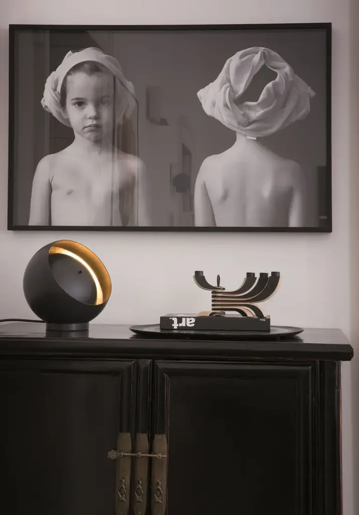 LED indirect light metal table lamp.1 x max 12,5 W (LED)3000°K 1770 lm CRI>85∅ 25 cmMaterials: metal Colors: external black/ inner goldCertifications: CE