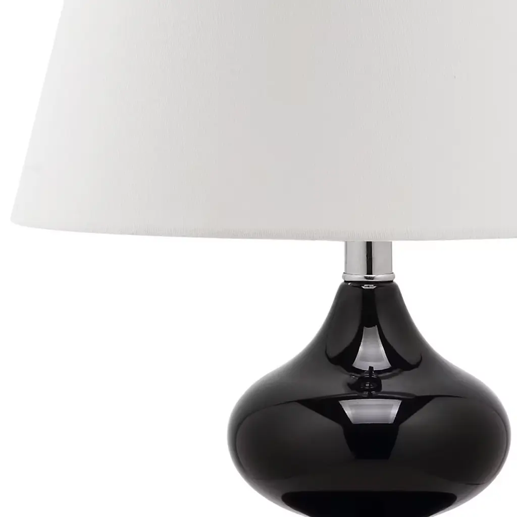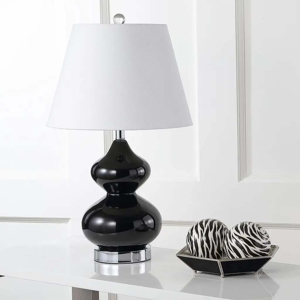Elevate your space with the elegant EVA black glass metal table lamp. Its sleek design features a black glass base that reflects a timeless appeal, complemented by a cream linen shade adding a touch of sophistication. This lamp is perfect for enhancing your living room or bedroom ambiance, bringing both function and style to your decor. The combination of glass and metal materials offers a modern aesthetic that blends seamlessly with various interior themes. Illuminate your surroundings with an accessory that not only brightens your space but also serves as a striking visual centerpiece. Whether youre unwinding with a book or hosting a gathering, this lamp creates the perfect atmosphere. Experience the seamless fusion of beauty and purpose with the EVA table lamp in black, designed to enrich your home with its understated charm and gentle illumination.