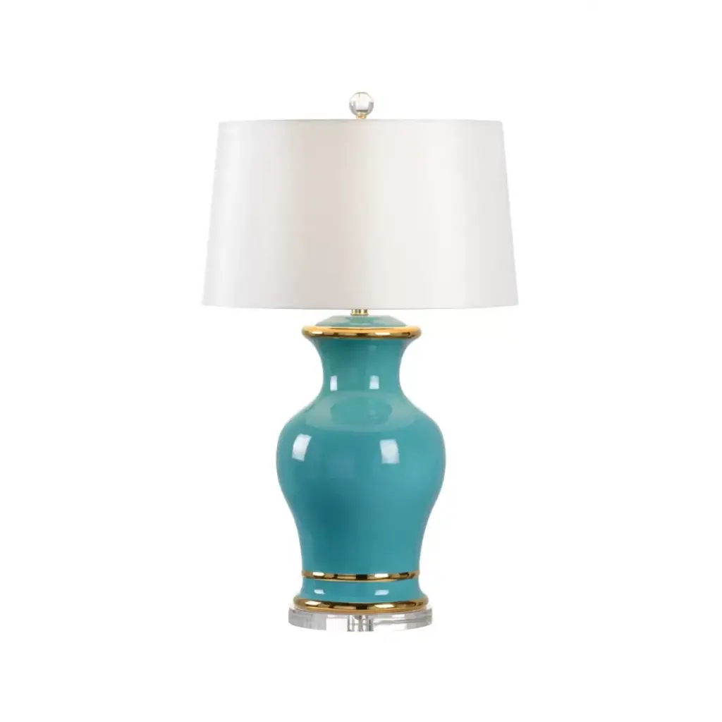 This ceramic table lamp features a vase-shaped or rounded base design, topped with a sophisticated linen or cotton hardback shade. Its elegant form and versatile style make it a perfect addition to any room, adding a touch of refinement and charm.