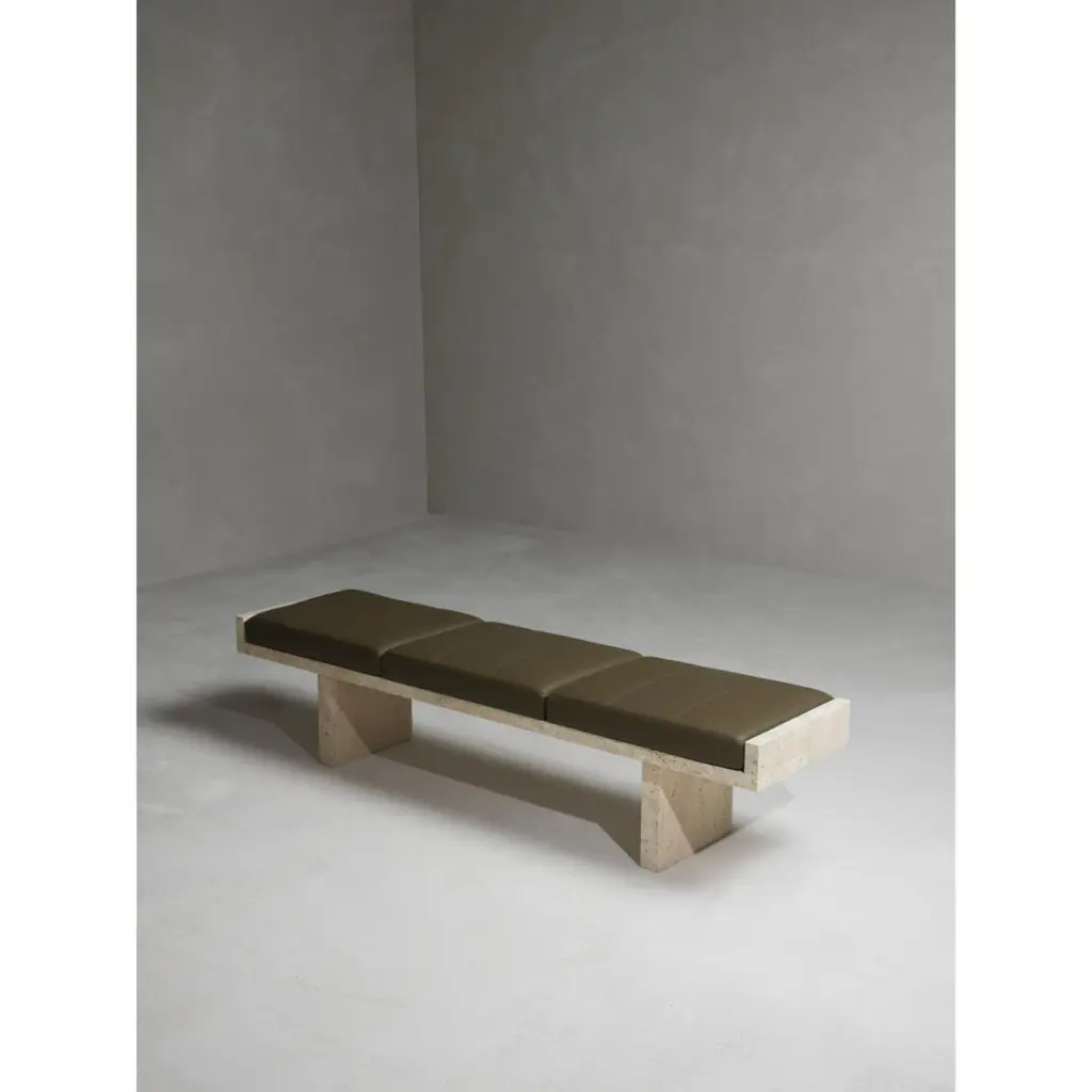 Ever Bench by Kreoo Designed by Christophe PilletDimensions: D 45 x W 190 x H 43 cm.Materials: Persian grey marble and leather.Available in different marble and travertine options. Please contact us.The softness of pebbles worked by the action of water inspires the Ever Bench to propose a geometric interlocking of marble slabs of different thicknesses. Designed by Christophe Pillet for Kreoo and suitable for indoor and outdoor environments, it features a 4cm thick seat surface, with two small edges on the lower sides that allow for the placement of cushions, upholstered in leather or fabric and adorned with visible stitching details. The structure slightly recedes and is composed of two more 6cm massive sections, which support a longitudinal beam at the center to ensure stability and durability. Ever is available in five types of marble from the catalog, with a matt finish, and is conceived to furnish living and bedroom spaces, hallways, retail environments, as well as outdoor lounges and terraces.Kreoo: the new marble experienceKreoo links its name to the best Italian tradition in marble manufacturing and brings to new light the primordial charm of a material that has witnessed the evolution of civilizations and cultures.From the bathroom and living room to coverings, home accessories, and lamps, the company works with natural stone in various forms and aesthetic compositions, enriching it with other materials such as metals, wood, and glass. The result is a fascinating and chromatic language, suitable both indoors and outdoors. Expressed in contemporary but still customizable designs, Kreoo highlights workmanship know-how and excellence.The brand, born in 2010 by the experience of Decormarmi and its worldwide distribution strength, has led to major international projects, especially in hospitality and luxury residential.