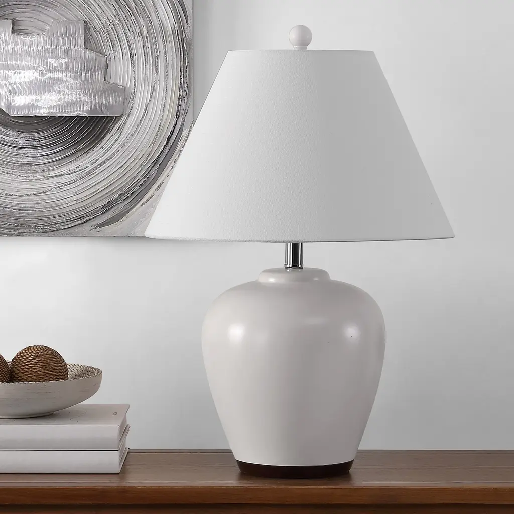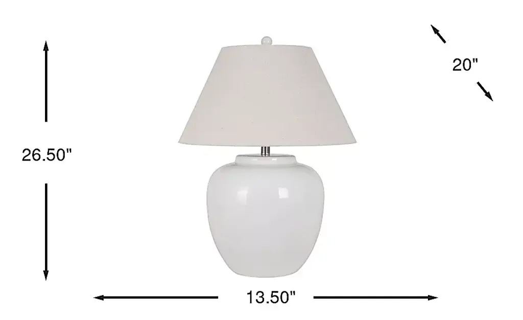 Serenity and style bathed in a soft glow, the Ewers Creek table lamp's familiar shape and classic style create a sense of ease and casual familiarity. Finished in ivory white with a subtle crackle effect, this accent features a 3-way switch under its beige shade and accommodates up to a 100-watt bulb.