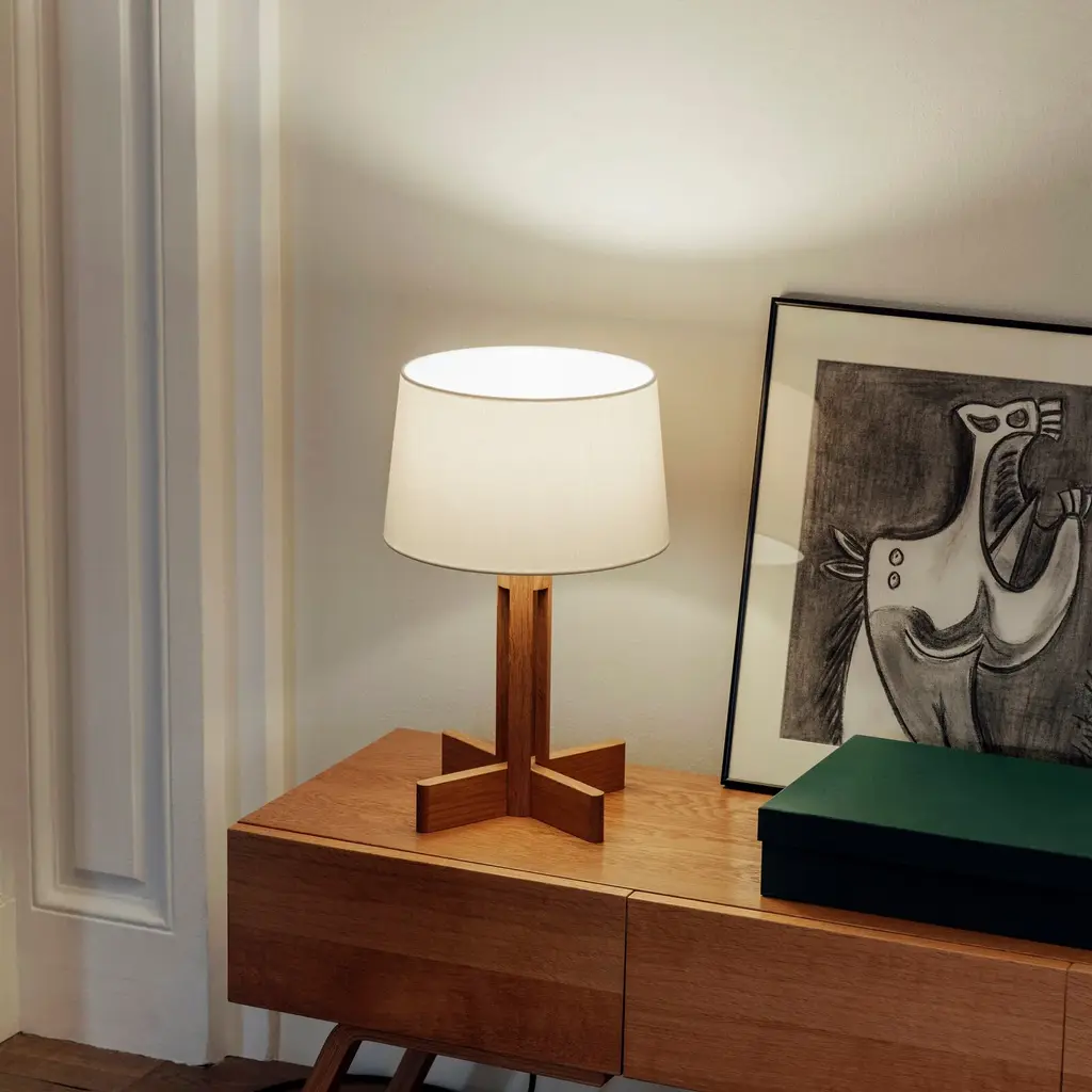 Named for the first industrial design association in Spain cofounded at midcentury by its renowned creator Miguel Milá, this 1973 table lamp is a lasting demonstration of refined craftsmanship. FAD's cylindrical oak column creates a vertical symmetry that gracefully supports a slightly sloped white-linen shade. With his preference for "noble materials, which know how to age well," the timeless piece eschews any unnecessary adornment for an enduringly simple elegance.