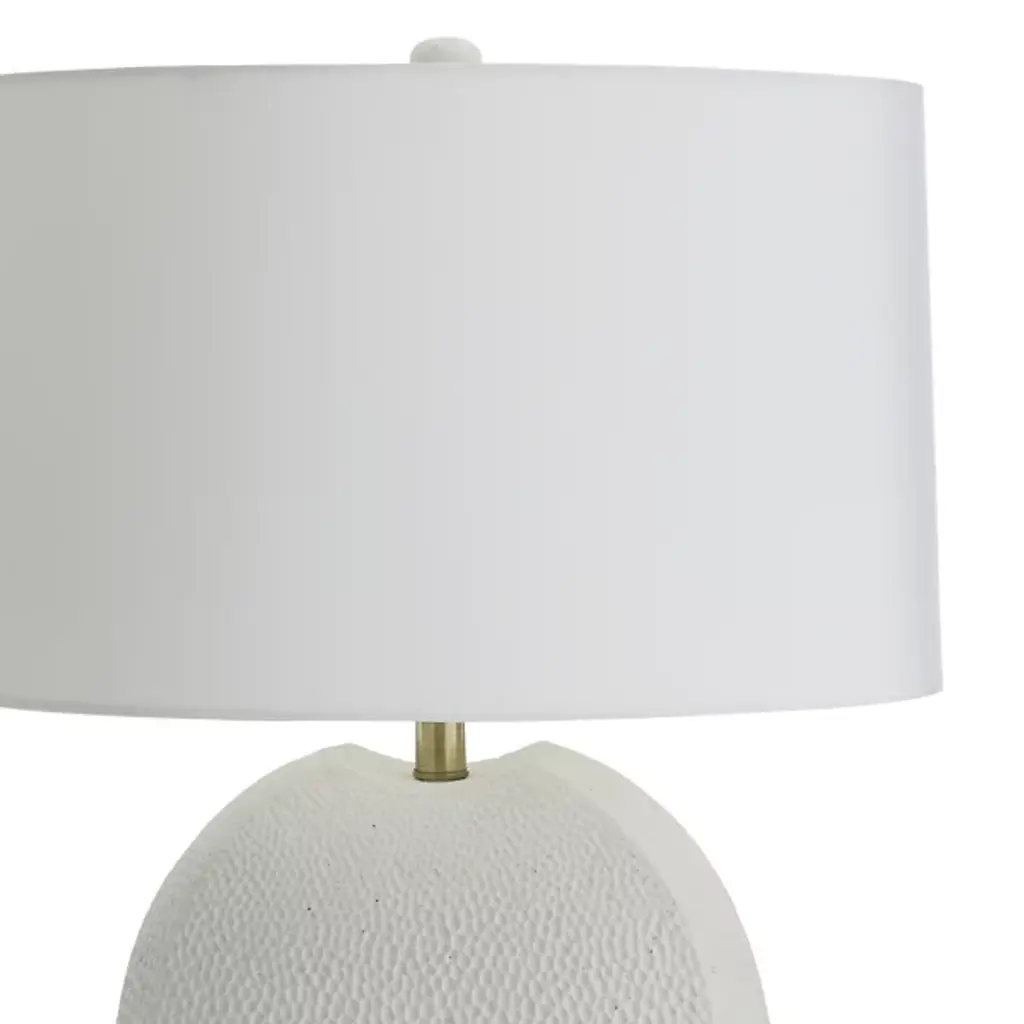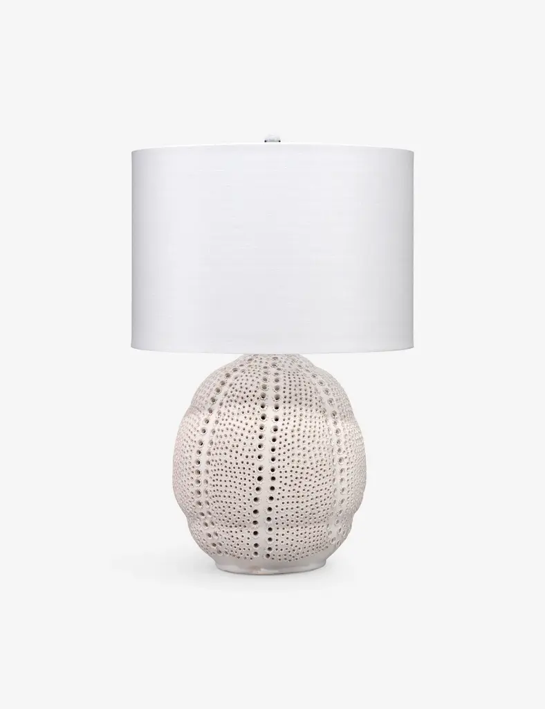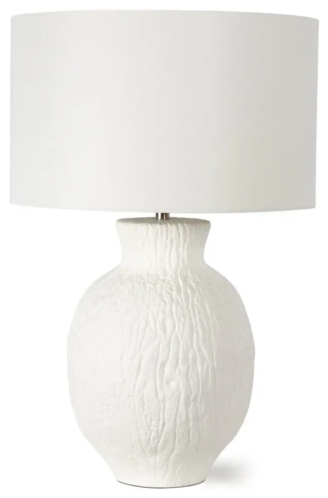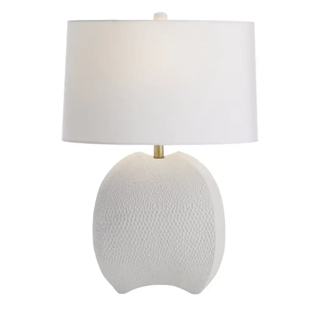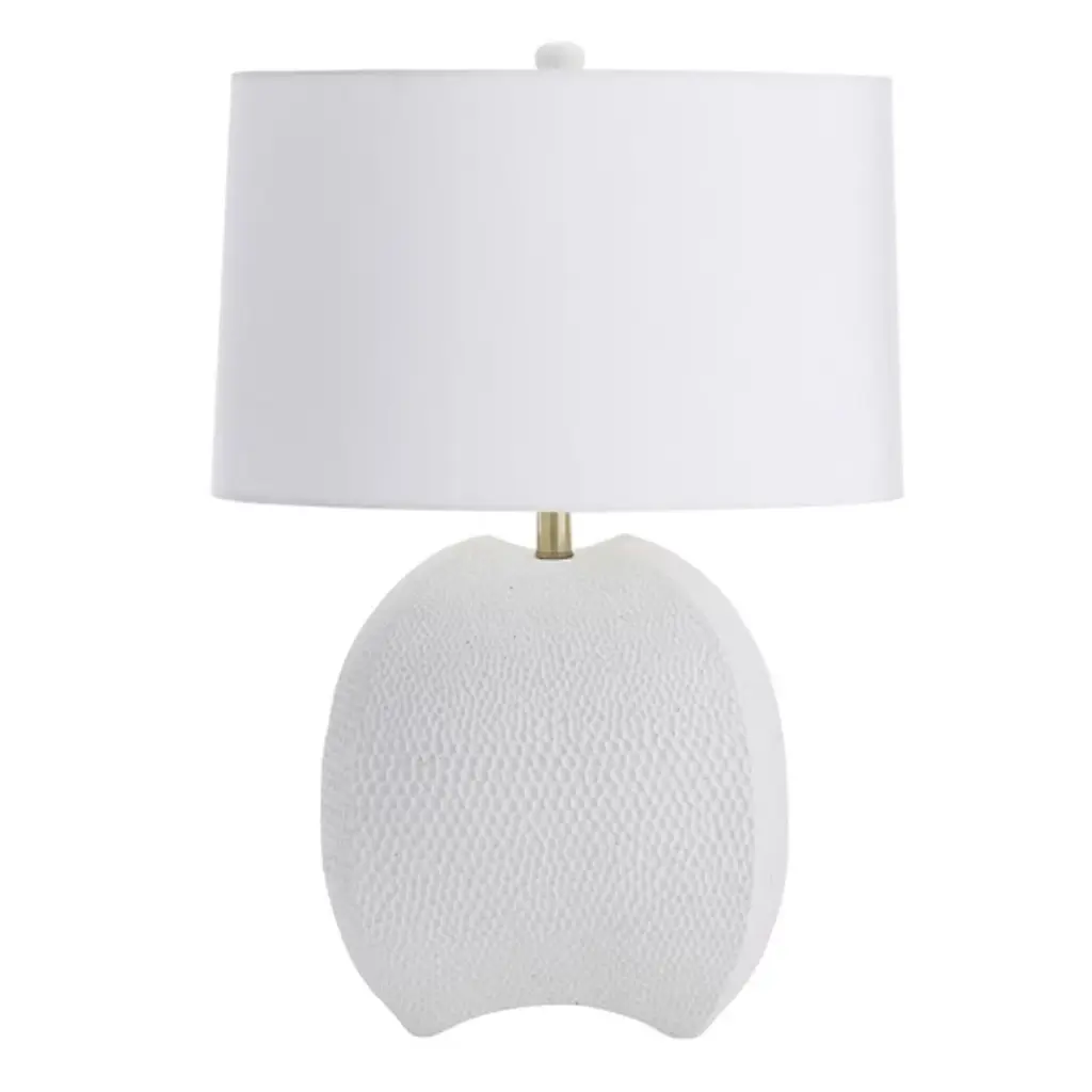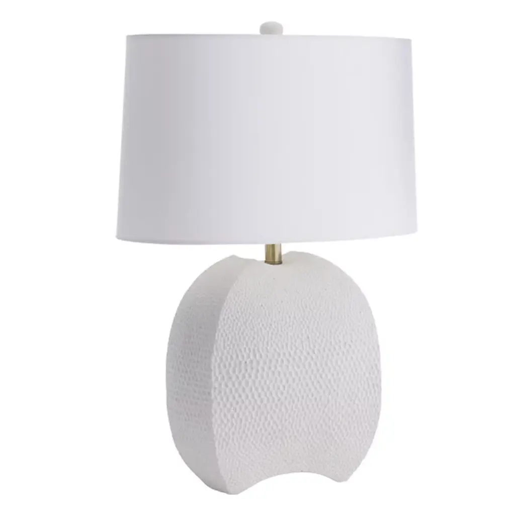 The Fairbanks Table Lamp from Arteriors embodies tranquil minimalism with its gracefully sculpted shape. This aesthetic ceramic piece features an intricately textured surface that evokes the natural patterns found in coral reefs, creating a tactile masterpiece. The Fairbanks Table Lamp's gently ascending form guides visual interest upward, while its thoughtfully designed rectangular base ensures stability. This luminous creation merges artistic expression with functional lighting, and the contemporary appeal makes it an ideal accent for modern spaces.