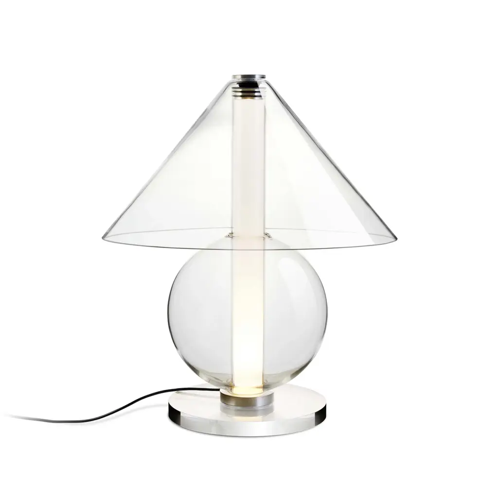 Designed by Juan Orts for Myo, the Fairmont Table Lamp is a transitionally styled piece with mid-century modern influences throughout. Made in Spain, it features gorgeous brass metalwork, a handblown transparent glass base, and double-white opal glass shading for a pleasant diffusion of light. The graceful fashion in which this piece displays helps to provide an elevated illumination experience. The Fairmont Table Lamp can be placed solo or in multiples to help bring your interior design vision to cohesion.