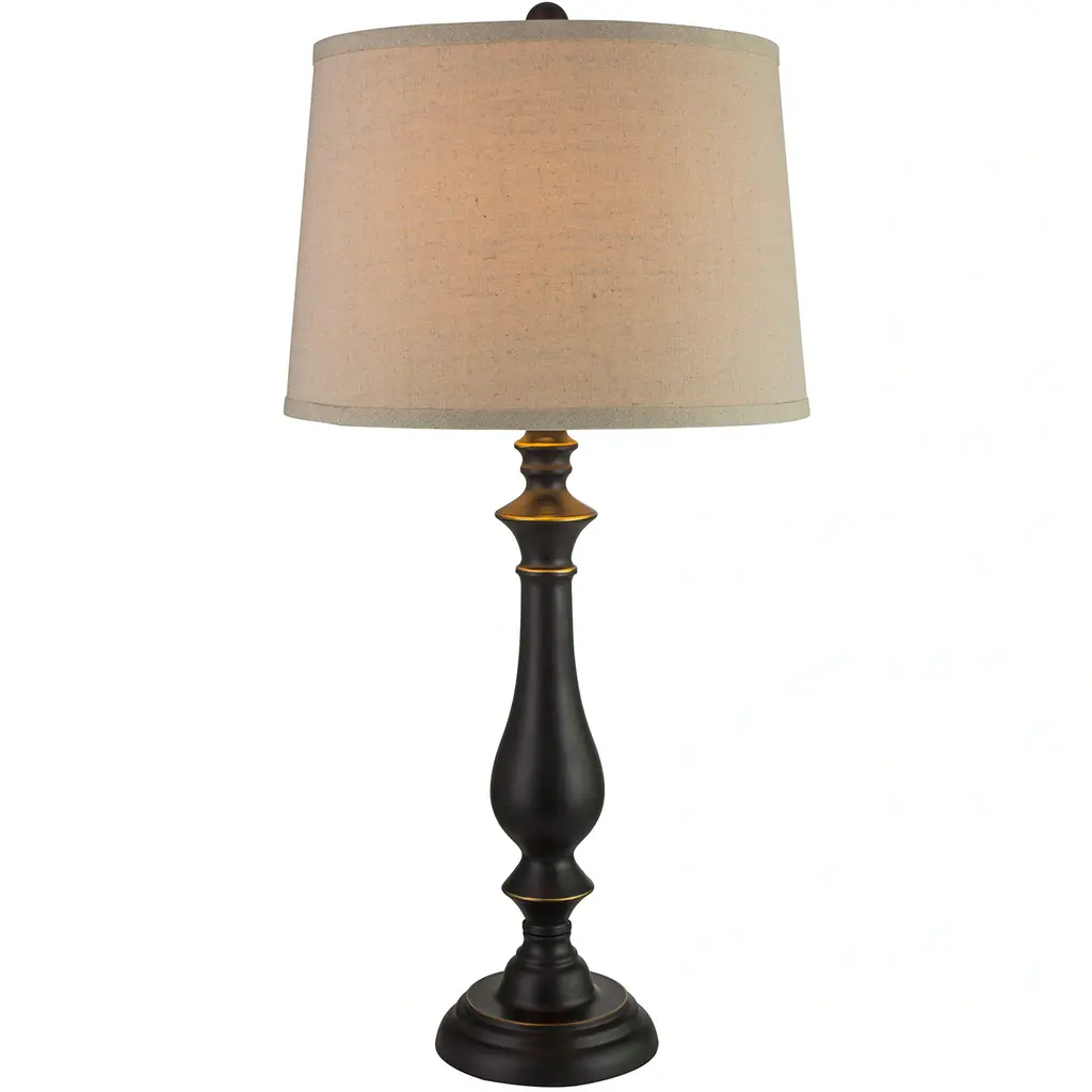 Fangio Lighting's #1433MB 31.5 inch Metal Table Lamp infuses a touch of elegance into a room with its Madison Bronze Finish. This lamp is sure to compliment any decor. Topped with a designer Oatmeal Linen shade and easy to use 3-Way switch makes this an instant favorite. This item is UL Approved and CSA Listed. Finish: Madison bronze UL Approved and CSA Listed 1 Year Warranty Setting: Indoor Fixture finish: Other Shades: Drum, oatmeal linen Number of lights: One (1) Requires (1) 100-watt medium base 3-way bulb (not included) Socket switch Dimensions: 31.5 inches high x 15 inches wide x 15 inches deep Assembly required.