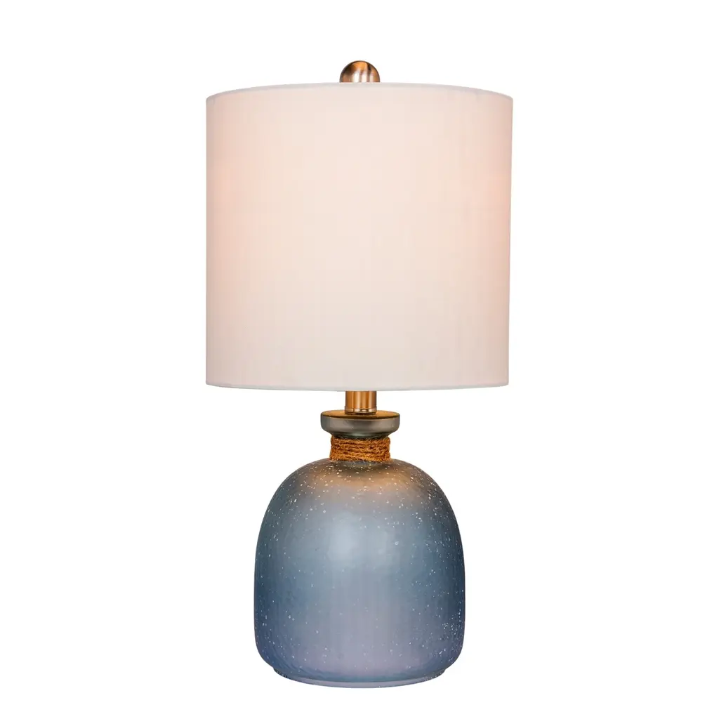 Fangio Lighting's 5157BL 19.5 in. Island Bottle Glass Table Lamp in Frosted Blue is sure to instantly charm. Attention to detail can be found in the striking look and stunning design that will add a subtle Transitional flare to your favorite space. The Blue finish is among the most desired in homes today! Lamp includes a designer shade made in a décor friendly hue of White. Light comes complete with an easy to use On/Off switch. This item takes 1 bulb with a maximum wattage of 60 (Not Included.) Lamp is UL and CSA Listed. Showcase your discerning tastes brilliantly with this item. The stylized, Island Bottle look possesses its own presence while illuminating your exquisite decorating tastes. If you enjoy the graceful lines of Transitional designs, this is the lamp for you! Bring this item home! You will be glad you did!