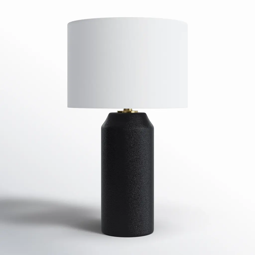 Timeless design with an elegant air. The Fanny Wide Table Lamp from Visual Comfort Studio, formerly known as HABLE, adds a vibrant, stylish presence to nightstands or side tables; its rounded ceramic body with subtle, horizontal ring accents sweeps upward to a sleek metal disc and central stem holding the fixture’s lamping. A cylindrical shade fashioned from translucent fabric extends down over the lamping, casting direct light across the matte-textured, grooved body to reveal a vibrant assembly of light and shadow.