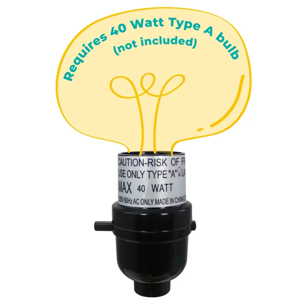 Illuminate your child's room or play area with the fun and colorful Fantasy Fields Sunny Safari Table Lamp. The base of this playful lamp features 3 adorable safari animals: a tiger, a giraffe, and a monkey, and its lampshade displays a zebra playing with a beautiful butterfly. Constructed of durable wood with a canvas lampshade, this lamp is designed to provide a long-lasting light source to your child's bedroom or playroom. Whether as a light to illuminate play surfaces or as a nightlight, this multi-use table lamp is a versatile addition to your home or daycare. To assemble this table lamp, simply follow the included step-by-step instructions and place wherever you need light. Display this light on its own or with other items from the Sunny Safari collection for a bright and joyful playroom. This lamp requires one 40 Watt Type A 120V 60hz bulb for operation (not included), and measures just 9.02" x 9.02" x 15.51" to provide a pop of color in your little one's room without taking up too much space. The Fantasy Fields Sunny Safari Table Lamp is recommended for children of all ages.