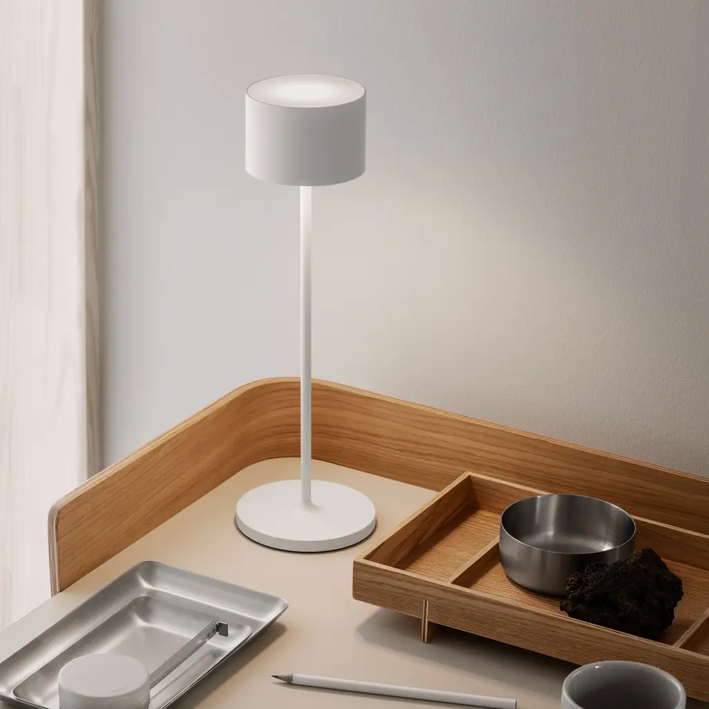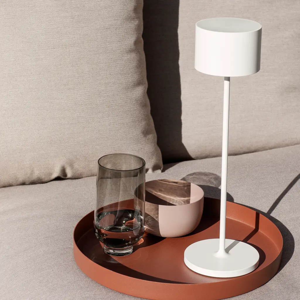 Introducing the blomus FAROL Mobile Rechargeable LED Lamp – the epitome of versatile, elegant lighting that effortlessly illuminates your life. Revel in the freedom to create the perfect ambiance, whether indoors or outdoors, with this exquisitely designed cordless table lamp. The FAROL’s modern silhouette, available in three sophisticated shades – Satellite (taupe), White, and Warm Grey – seamlessly blends with any décor, making it the ideal companion for cozy nights on the patio, intimate dinners, or simply adding a touch of class to your daily routine. Read more Powered by cutting-edge LED technology, the FAROL delivers an adjustable, energy-efficient glow with just a gentle touch to the top center of the lampshade. Effortlessly toggle between three levels of brightness to suit your mood and setting. The rechargeable battery and USB plug ensure that your FAROL is always ready to shine, no matter where your journey takes you. Experience the future of portable lighting with the blomus FAROL Mobile Rechargeable LED Lamp – a true beacon of style and convenience that will transform your living spaces and elevate your most cherished moments.
