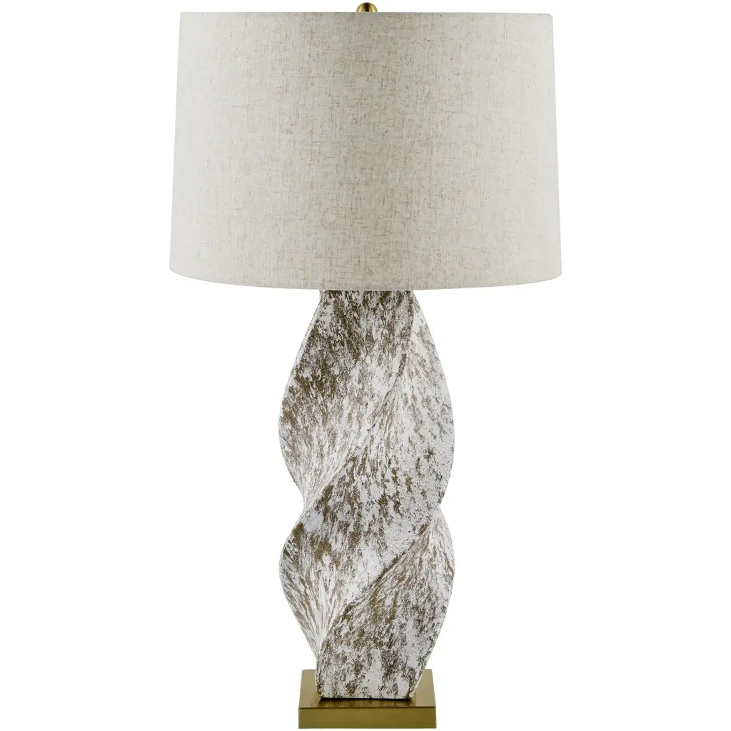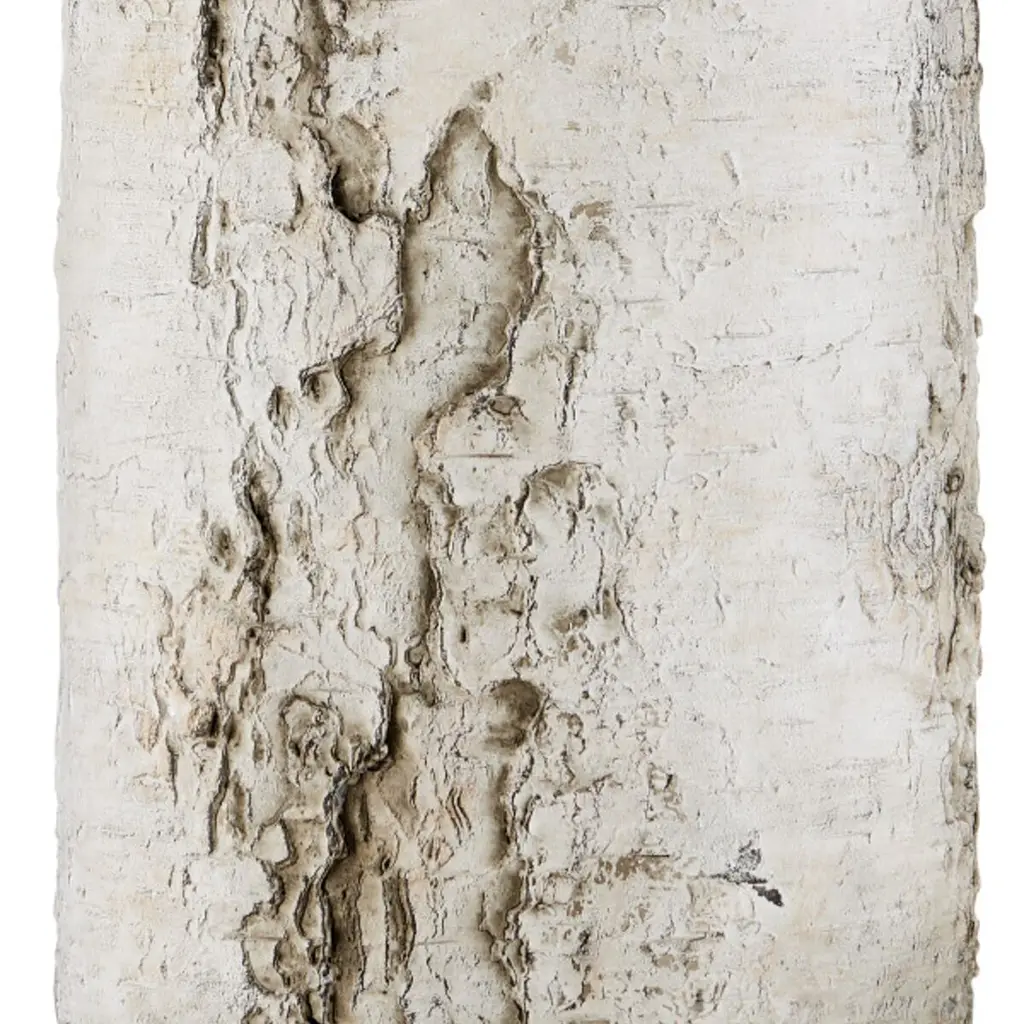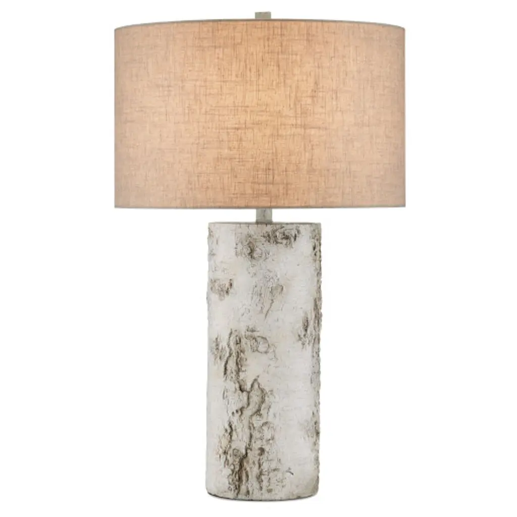 The Faux Birch Table Lamp presents a profile that mimics a tree trunk, yet it is an artisanal creation crafted from concrete. The illusion of wood is achieved through a hand-painted finish in birch white and gray hues, with dark patterning that appears as it would on a real tree.