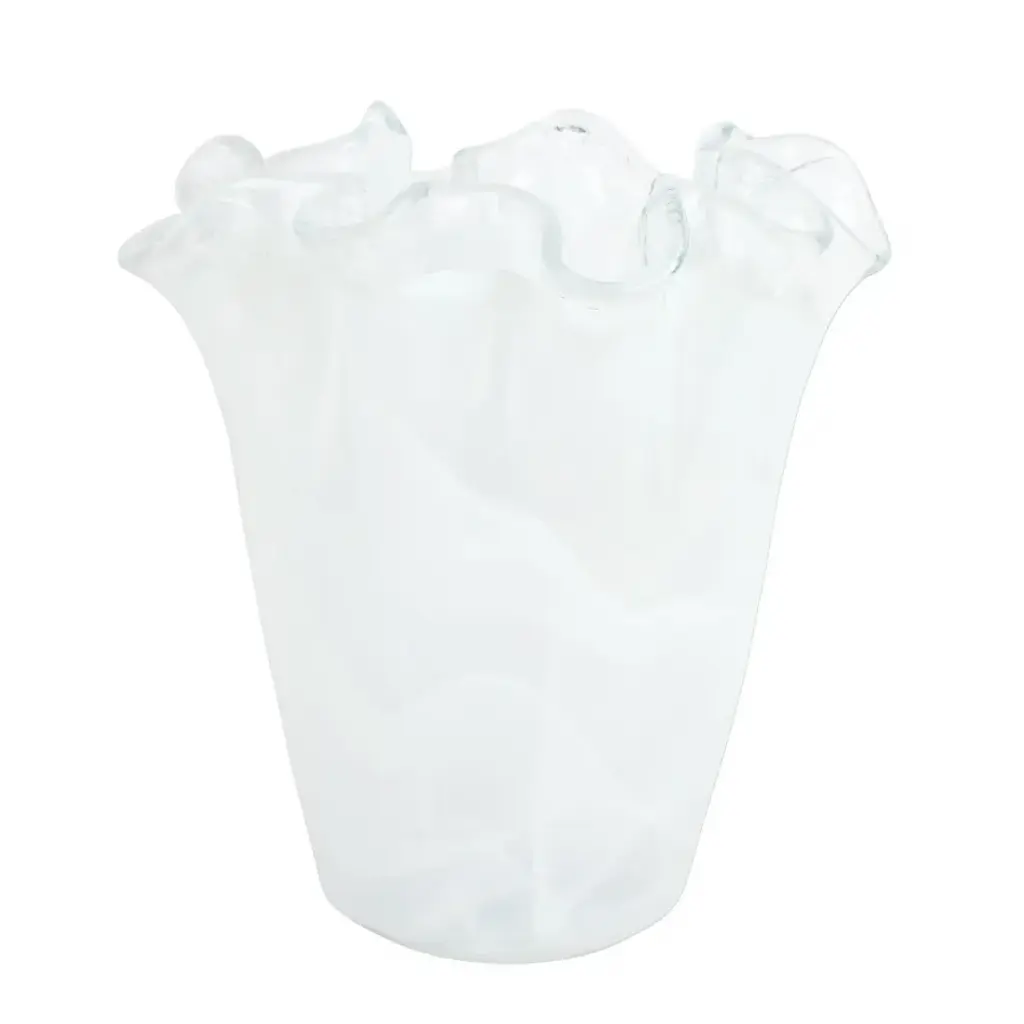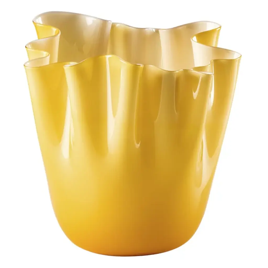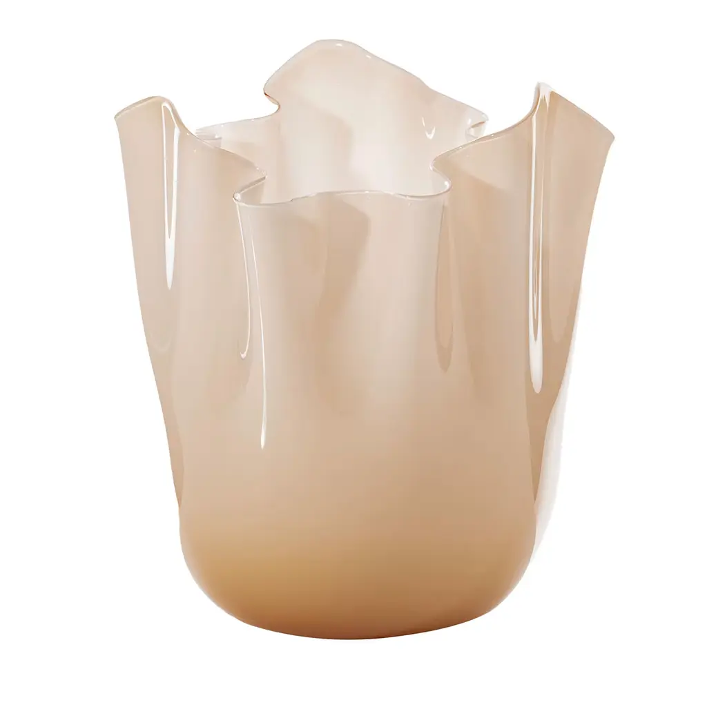 A splendid flounced design inspired by a handkerchief caressed by the breeze lends this table lamp in Murano glass its playful sculptural charm. Entirely unique due to the masterful glassblowing process behind it carried out by expert artisans, it flaunts a two-tone look where the white interior is veiled by a taupe hue on the exterior. An authenticity certificate is included with purchase.