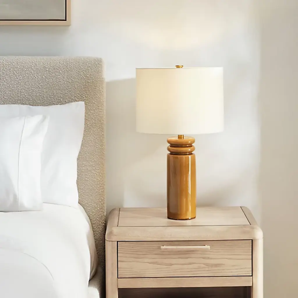 The Feikudo Table Lamp from Visual Comfort Studio celebrates Ellen DeGeneres' appreciation for artisanal craftsmanship. Its cylindrical ceramic base features intricately carved details and a distinctive crackle finish that adds depth and texture to its surface. This handcrafted quality gives each lamp subtle variations that mass-produced items simply can't match. Topped with a linen fabric shade that diffuses light pleasantly, this lamp creates a warm, inviting glow in living rooms, home offices, and bedrooms. Fully dimmable with a convenient socket switch, it transitions easily from task lighting to ambient illumination.