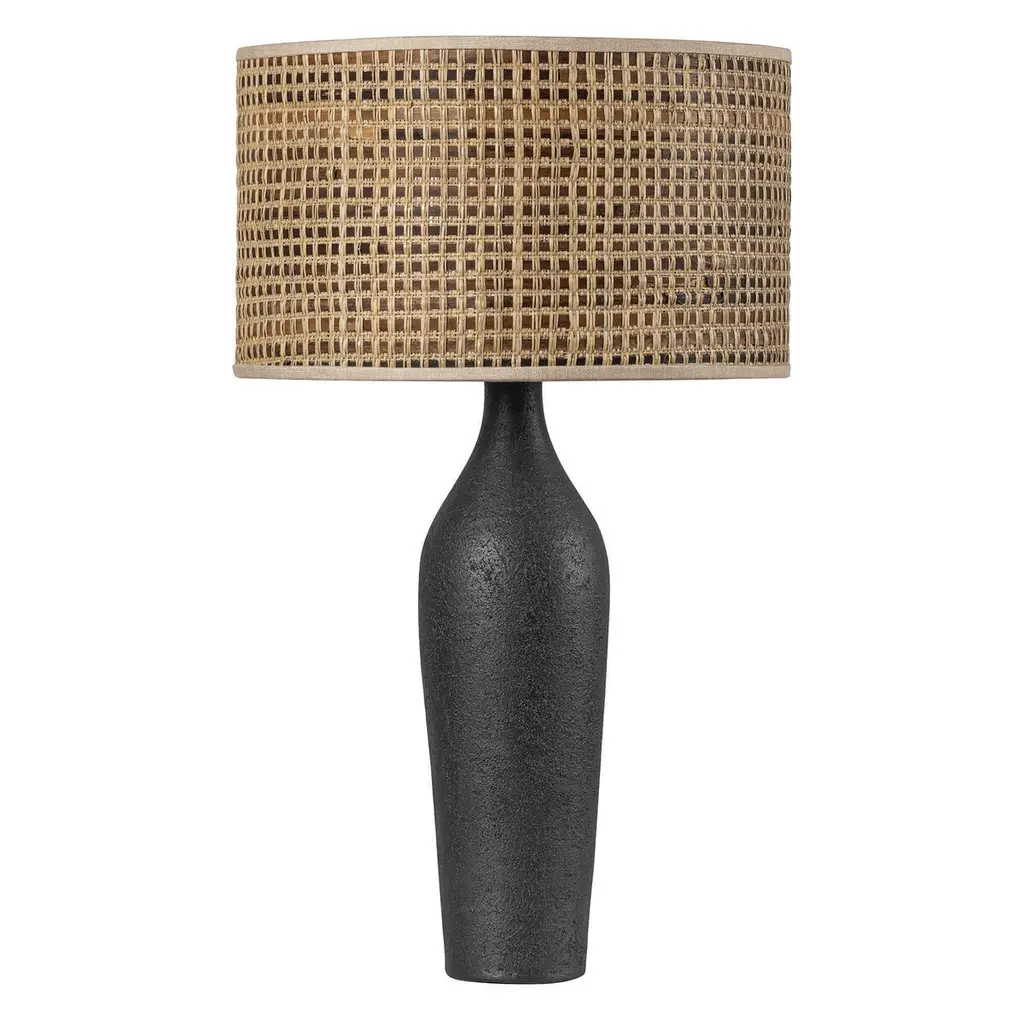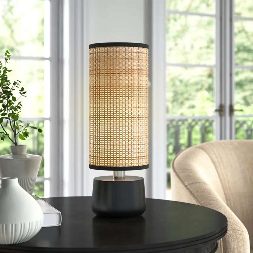 Crafted from sturdy steel, this table lamp showcases a streamlined silhouette that's topped off with a unique drum shade made of rattan. The ambient light direction creates a calm and serene atmosphere, perfect for winding down after a long day. Its dry location listing ensures it's safe for your home, and a simple wipe with a dry cloth keeps it looking fresh. Plus, the inline cord switch adds a convenient touch to this statement-making piece.