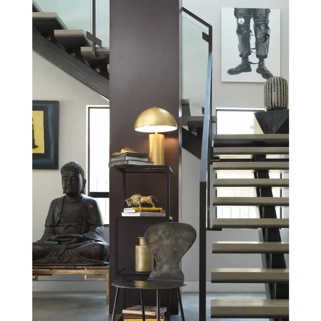 The design of this accent lamp lies at the intersection of industrial form meets traditional glamour. The antique brass metal finish shines in both a functional and formal way. Perfect for any desk or nightstand.