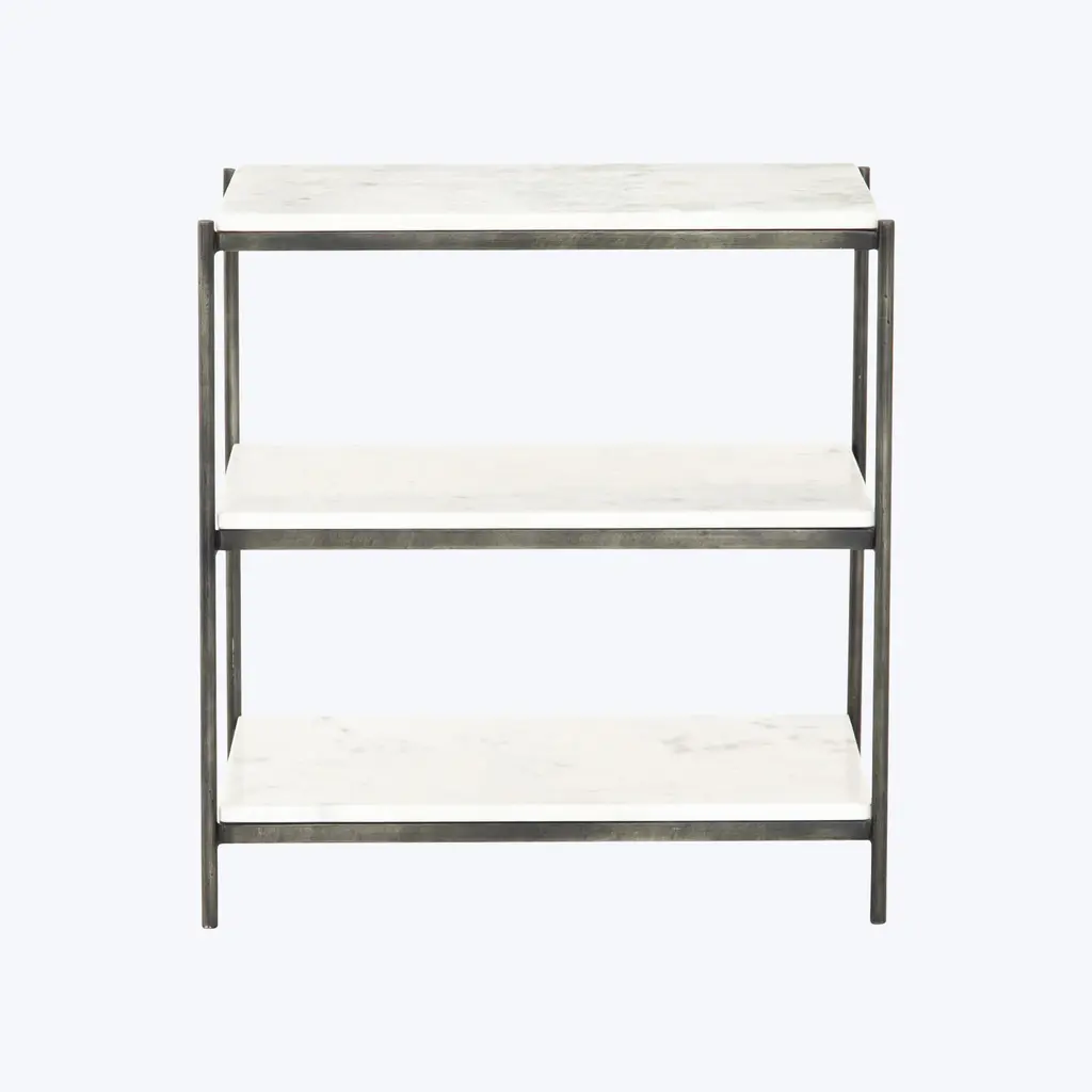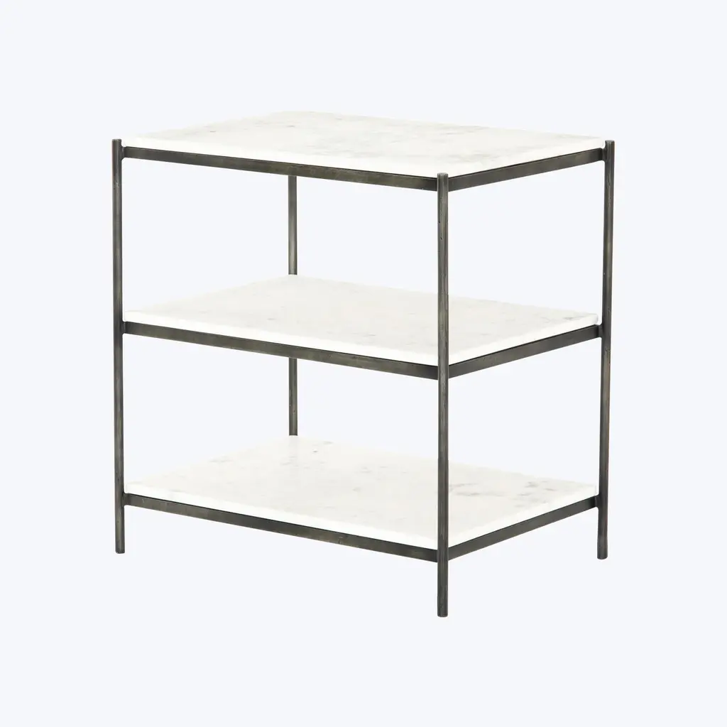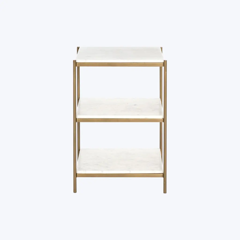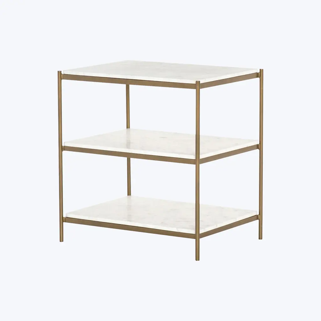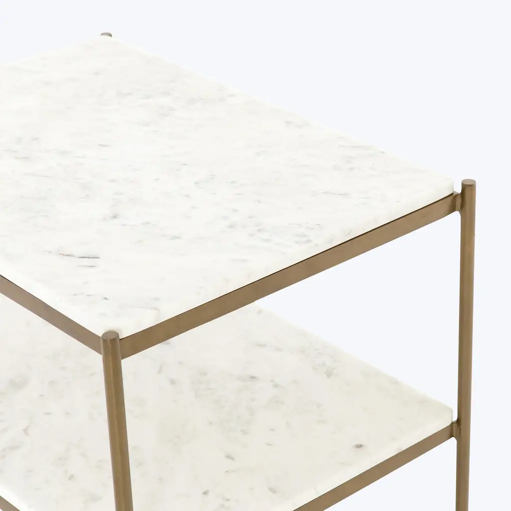 The Felix Nightstand adds a sophisticated look to your bedroom, guestroom, or entryway with a classic white marble tabletop. Featuring three spacious tiers of smooth shelving, this marble table allows for a generous surface area to store your favorite books, decor, side table lamp, and more. The antique brass-finished iron frames the white marble beautifully to add a feminine spin to bedside storage.