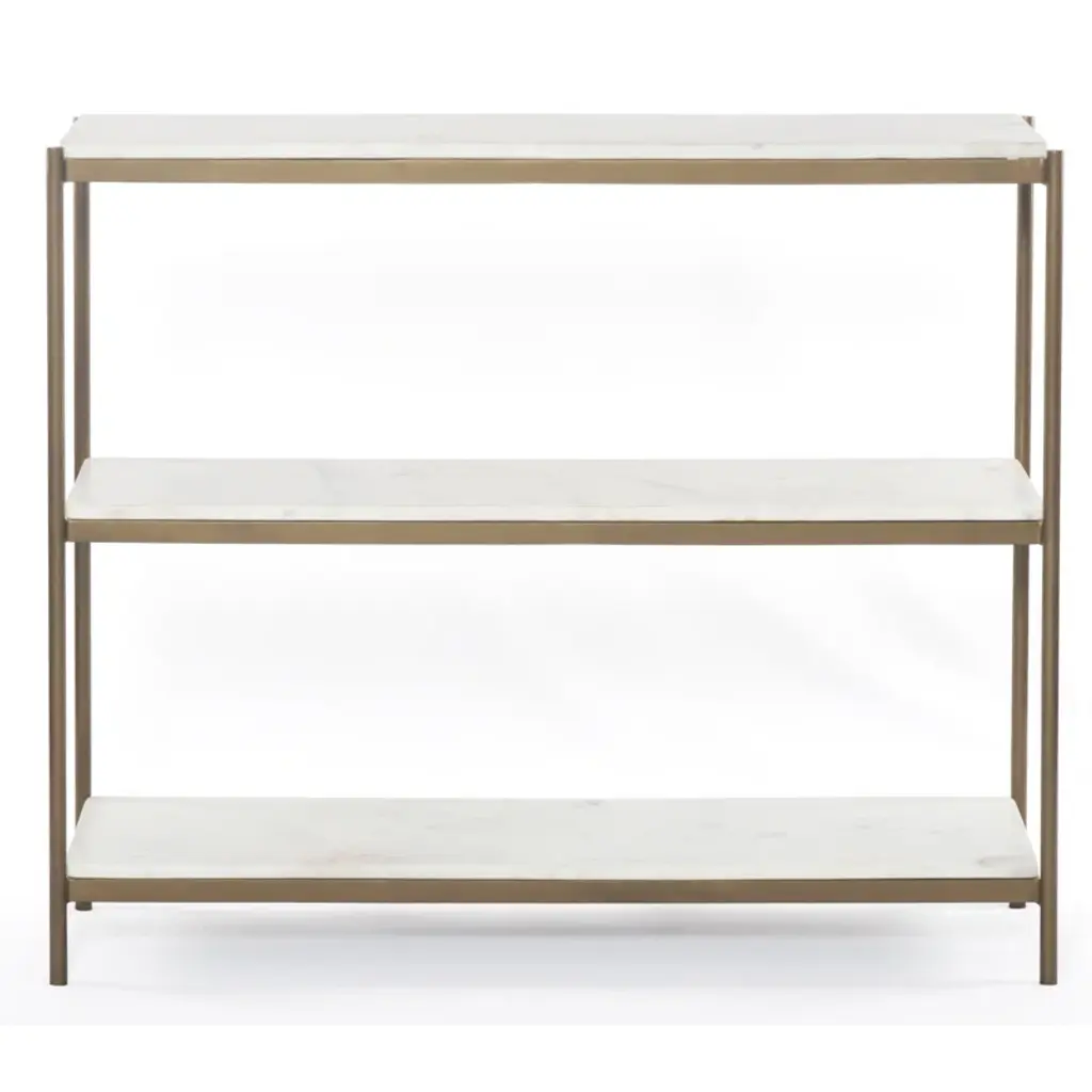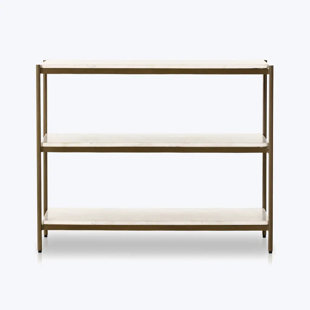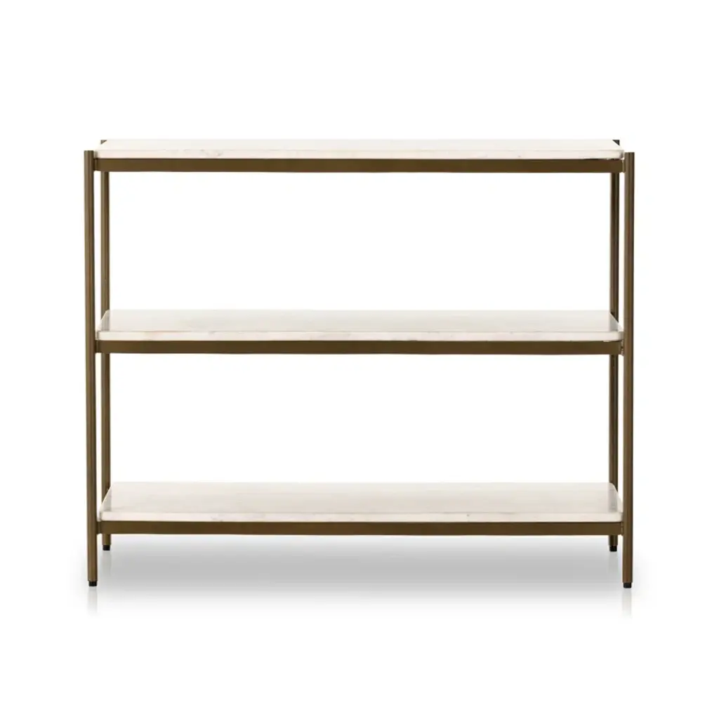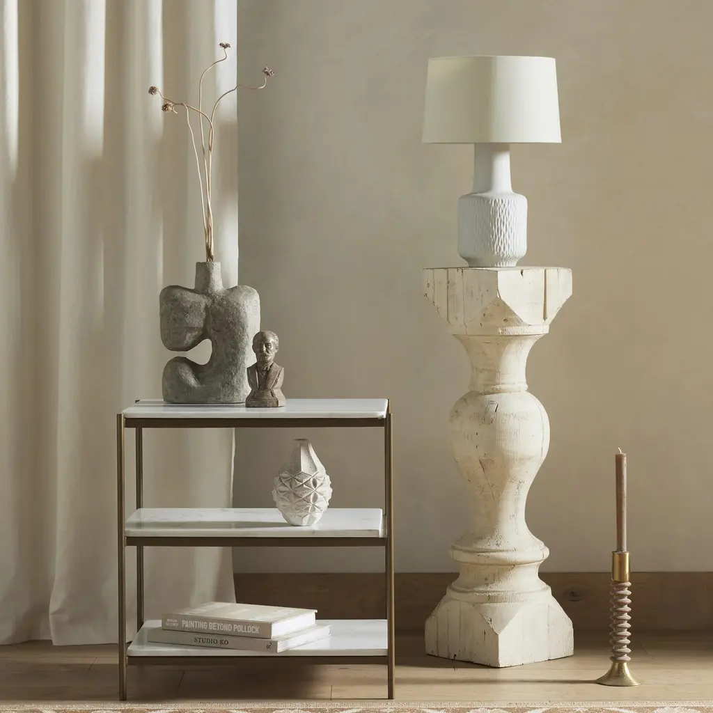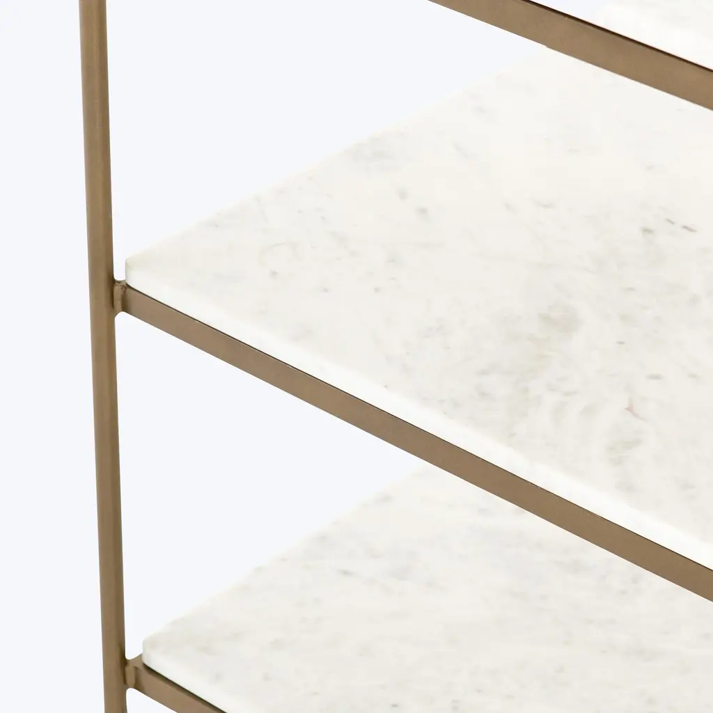 The Felix Nightstand adds a sophisticated look to your bedroom, guestroom, or entryway with a classic white marble tabletop. Featuring three spacious tiers of smooth shelving, this marble table allows for a generous surface area to store your favorite books, decor, side table lamp, and more. The antique brass-finished iron frames the white marble beautifully to add a feminine spin to bedside storage.